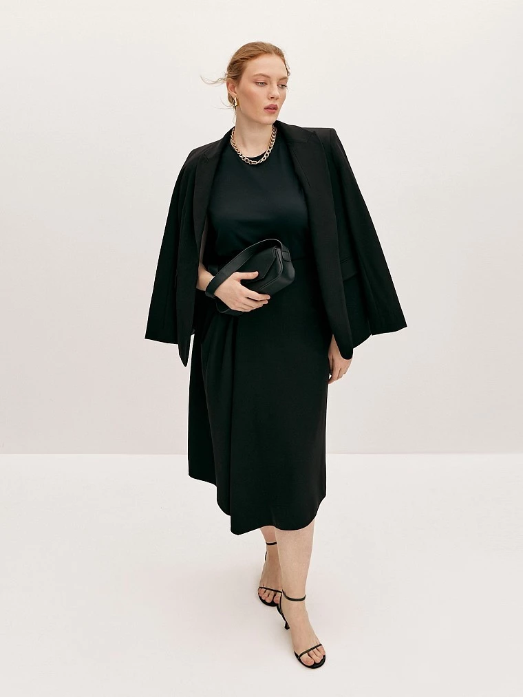 Бренд: LalisЦвет: ЧерныйСостав: Полиэстер - 88%, Спандекс - 12%Артикул: BL1312KРазмер на модели: 50Коллекция: НАВСТРЕЧУ ПЕРЕМЕНАМ