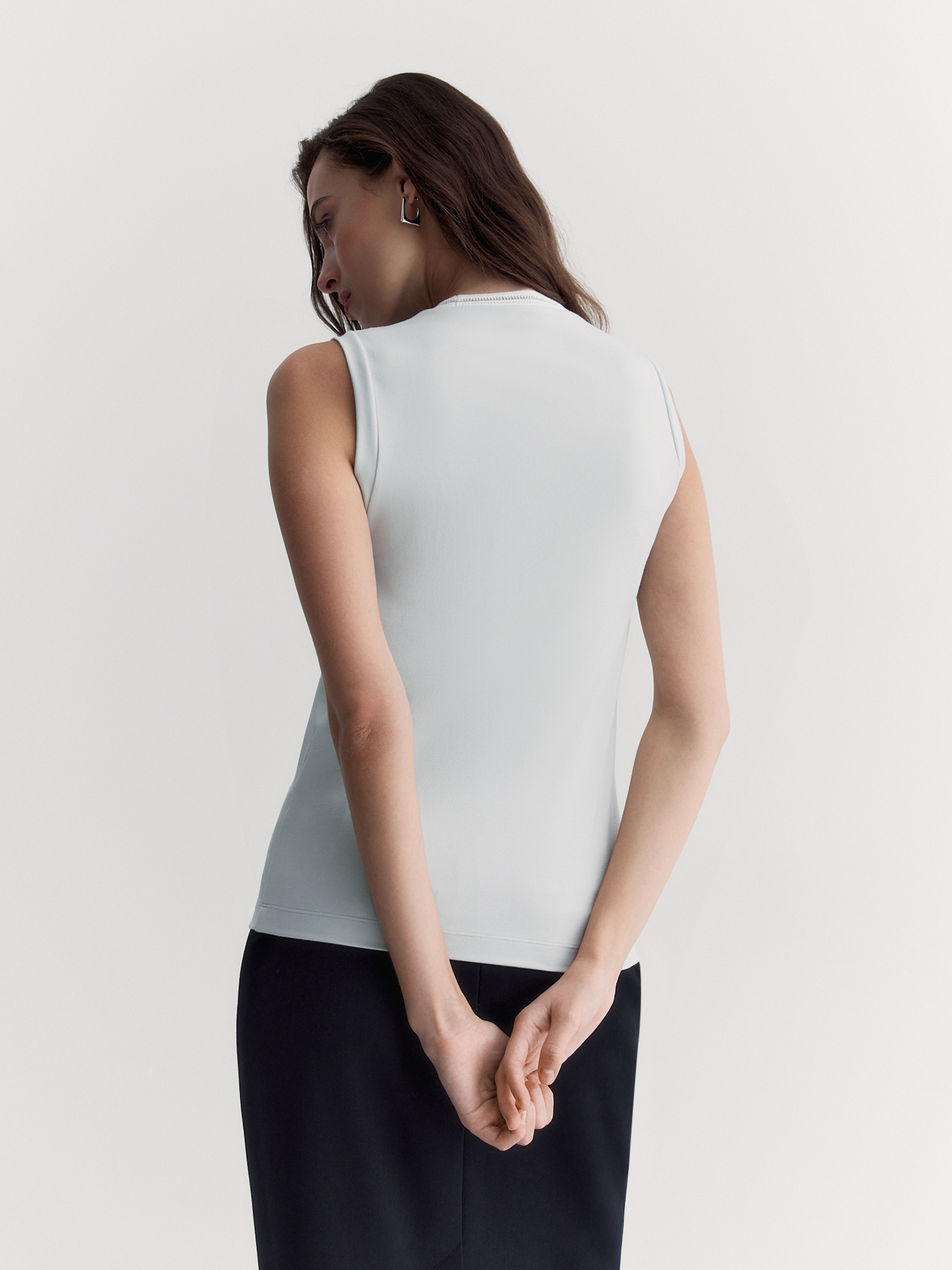 Базовый топ без рукавов облегающего кроя – основа для любого образа. Его можно носить как самостоятельную вещь или первый слой.