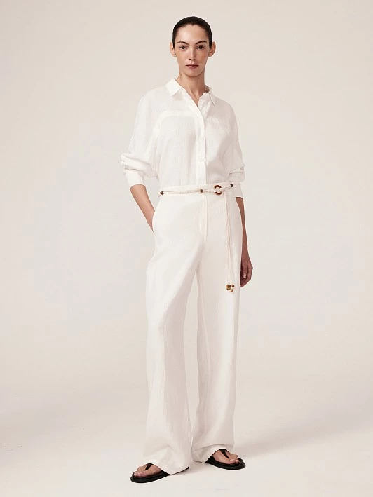 Бренд: ElisЦвет: БелыйСостав: Лен - 100%Рост: 177Артикул: BL1572Параметры модели: 85 - 61 - 89Размер на модели: 44Коллекция: THE ENDLESS SEA