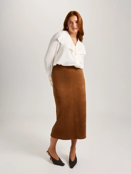 Блуза лаконичного молочного оттенка привлекает внимание благодаря продуманным деталям кроя. Широкий струящийся воротник не только выгодно обрамляет V-образный вырез, но и добавляет изысканности и романтичности общему образу. Этот элемент дизайна создает эффект легкости и расслабленности, что делает блузу идеальной для различных случаев — от повседневных до более формальных мероприятий. Втачной рукав, выполненный с умеренным объемом, завершается широким манжетом, который придает модели структурированность. Манжеты оснащены двумя петлями и съемной запонкой, что является интересным акцентом. Важно отметить, что запонки не только функциональны, но и служат стильным аксессуаром, который можно использовать и в других образах. Блуза изготовлена из высокотехнологичного полиэстера нового поколения, который демонстрирует отличные тактильные качества, прочность и долговечность. За таким материалом легко ухаживать, он практически не мнется и сохраняет свой первоначальный вид даже после многократных стирок, что делает блузу практичным выбором для повседневной носки. Блуза легко комбинируется с различными цветами и текстурами, позволяя создавать разнообразные образы. Молочный оттенок придает модели свежесть и легкость, что делает ее отличным выбором для весенне-летнего сезона, а также для создания многослойных образов в холодное время года. Эта блуза станет незаменимым элементом гардероба, который подчеркнет индивидуальность и стиль, обеспечивая при этом комфорт и элегантность в любой ситуации.