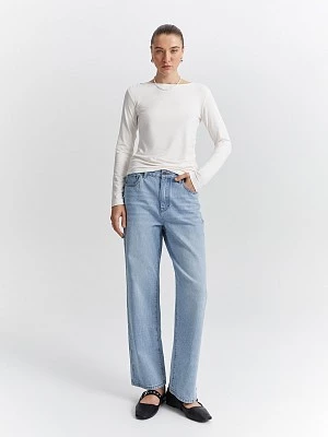 Женственная блуза теплого белого оттенка. Дышащий трикотаж на основе вискозы отлично тянется, обеспечивая идеальную посадку по фигуре. Эффектные драпировки на талии и плече создают привлекательный силуэт, подчеркивая естественные изгибы тела. Блуза станет как альтернативой классической рубашке для создания делового образа, так и дополнит лук в стиле смарт-кэжуал.