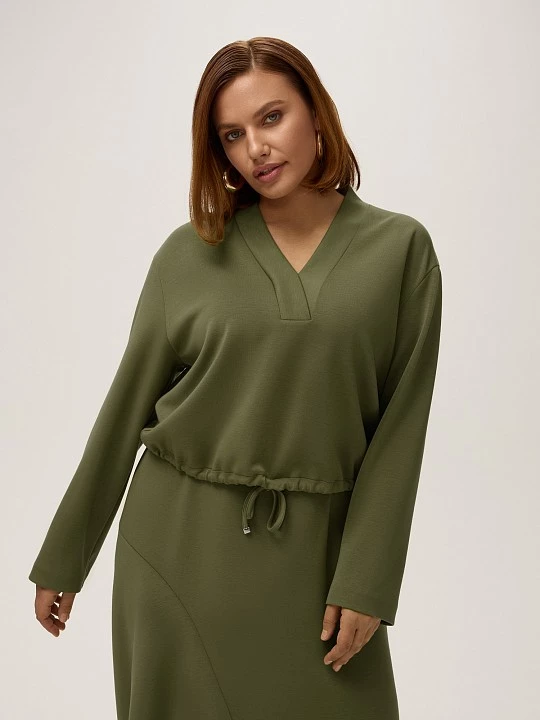 Блузка прямого силуэта со спущенным плечом — воплощение современной элегантности, где каждая деталь создана для вашего комфорта и стильного самовыражения. Свободный крой со спущенной линией плеча дарит непревзойденную легкость движений, создавая тот самый эффект непринужденной утонченности, который так ценится в современной моде. V-образный вырез с аккуратной бейкой мягко обрамляет зону декольте, добавляя образу женственности, в то время как кулиса по низу позволяет регулировать степень прилегания, создавая различные стилистические вариации — от свободного силуэта до более собранного варианта. Теплый природный тон оттенка "сфагнум" оживляет образ, делая его по-настоящему уникальным. Ткань, состоящая из полиэстера, модала и спандекса, сочетает в себе лучшие качества волокон: прочность и износостойкость полиэстера, мягкость и дышащие свойства модала, а также идеальную эластичность, которую обеспечивает спандекс. Этот состав дарит коже невероятно приятные тактильные ощущения, сохраняя форму и практически не сминаясь. Блуза прекрасно сочетается с юбкой SK0568K, представляя собой готовое стилевое решение, которое дополнит как повседневные, так и более нарядные образы.