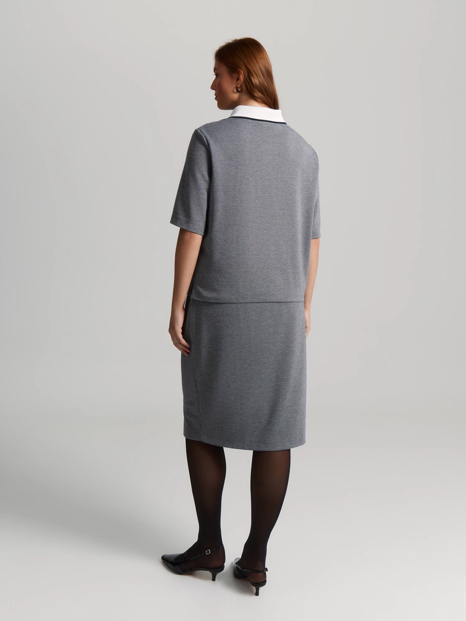 С юбкой из того же материала блуза составит гармоничный образ в стиле смарт-кэжуал.