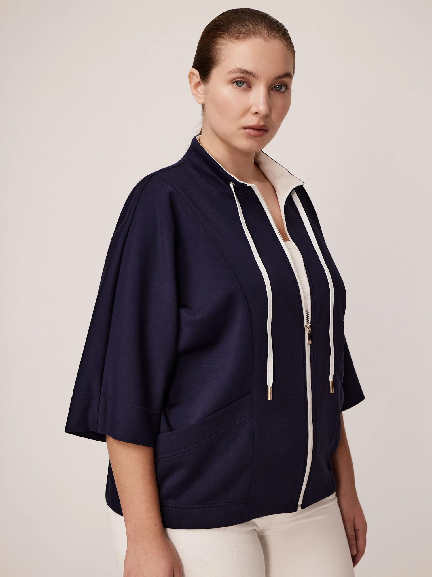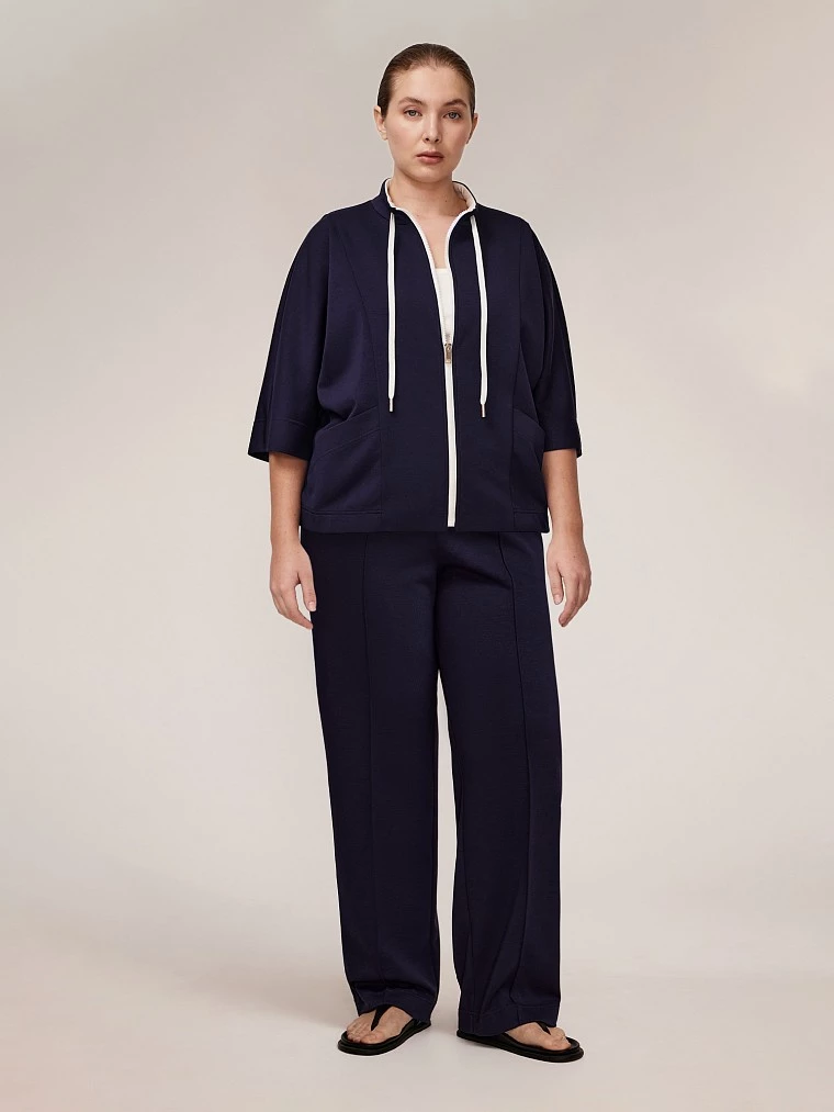 Вариация на тему бомбера — воплощение городского спортивного шика, где каждый элемент призван транслировать комфорт и стиль. Высокотехнологичная инновационная ткань — сочетание модала, полиэстера и спандекса — гарантирует необычайную легкость и свободу движений. Модал, созданный из природной целлюлозы, шелковистый и мягкий, обеспечивает идеальную воздухопроницаемость, а добавление полиэстера делает модель износостойкой и прочной. Эластичный спандекс гарантирует идеальную посадку по фигуре и отвечает за формоустойчивость. Глубокий, сочный оттенок "парижская ночь" придает модели благородную насыщенность, не отменяя практичности. Такой цвет превращает изделие в универсальную базовую вещь, которая одинаково уместна и в городе, и на отдыхе. Оттенок, символизирующий высокий уровень собранности и внутренней дисциплины, не случайно выбран для спортивного костюма. Для модели, символизирующей спортивную элегантность, выбран уникальный крой: рельефные швы создают видимость втачного рукава, с целью формирования стройного вертикального силуэта, а косые карманы визуально корректируют пропорции. Резинка по спинке, плавно заведенная вперед, обеспечивает правильное прилегание, призванное не стеснять движения.
