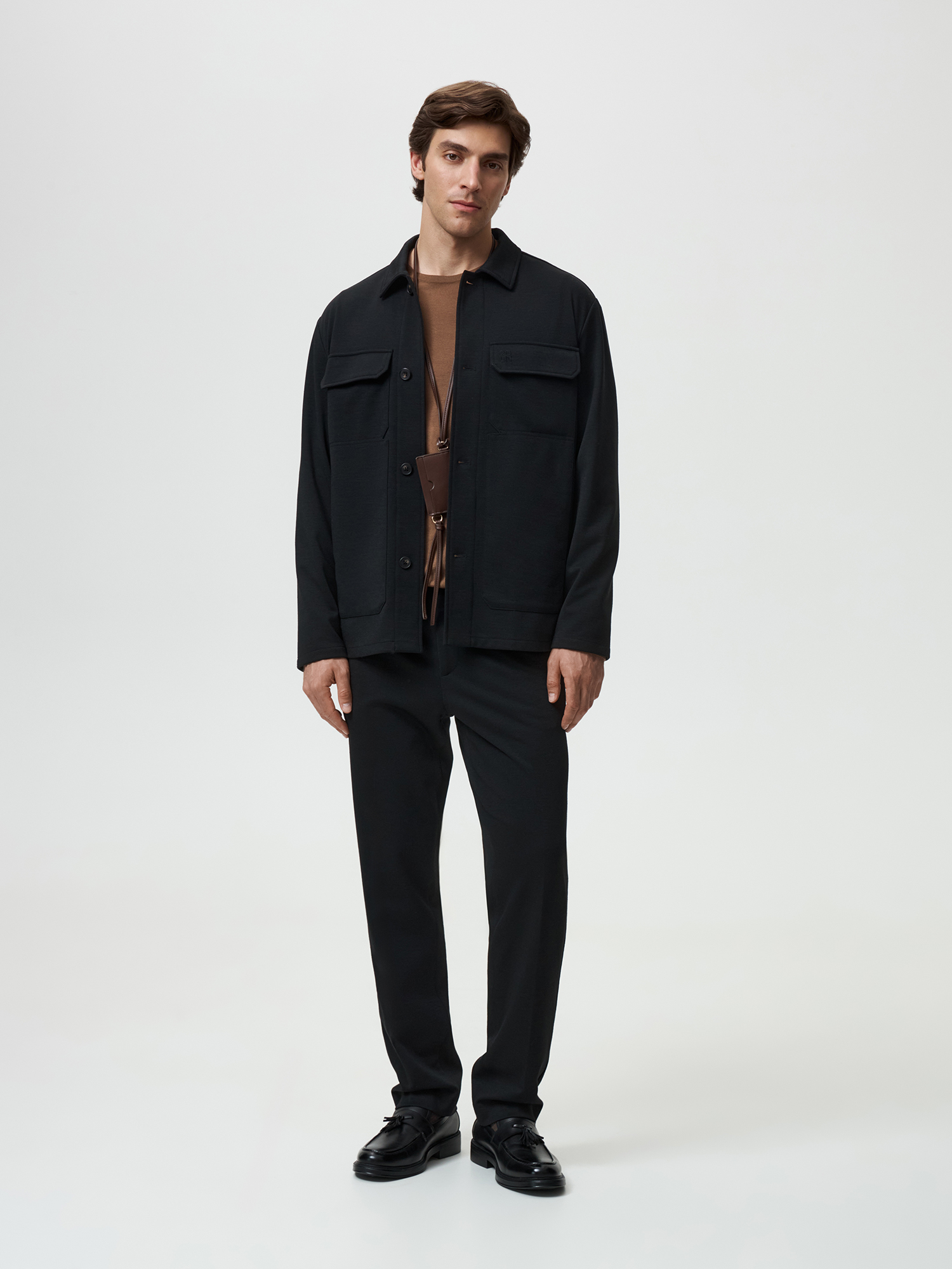 Бренд: 20lineЦвет: ЧерныйСостав: Полиэстер - 68%, Шерсть - 30%, Эластан - 2%Рост: 187Артикул: IPT0026KРазмер на модели: 50Коллекция: EARLY FALL