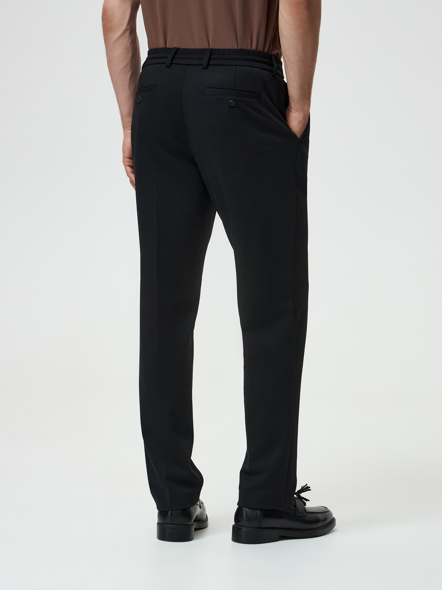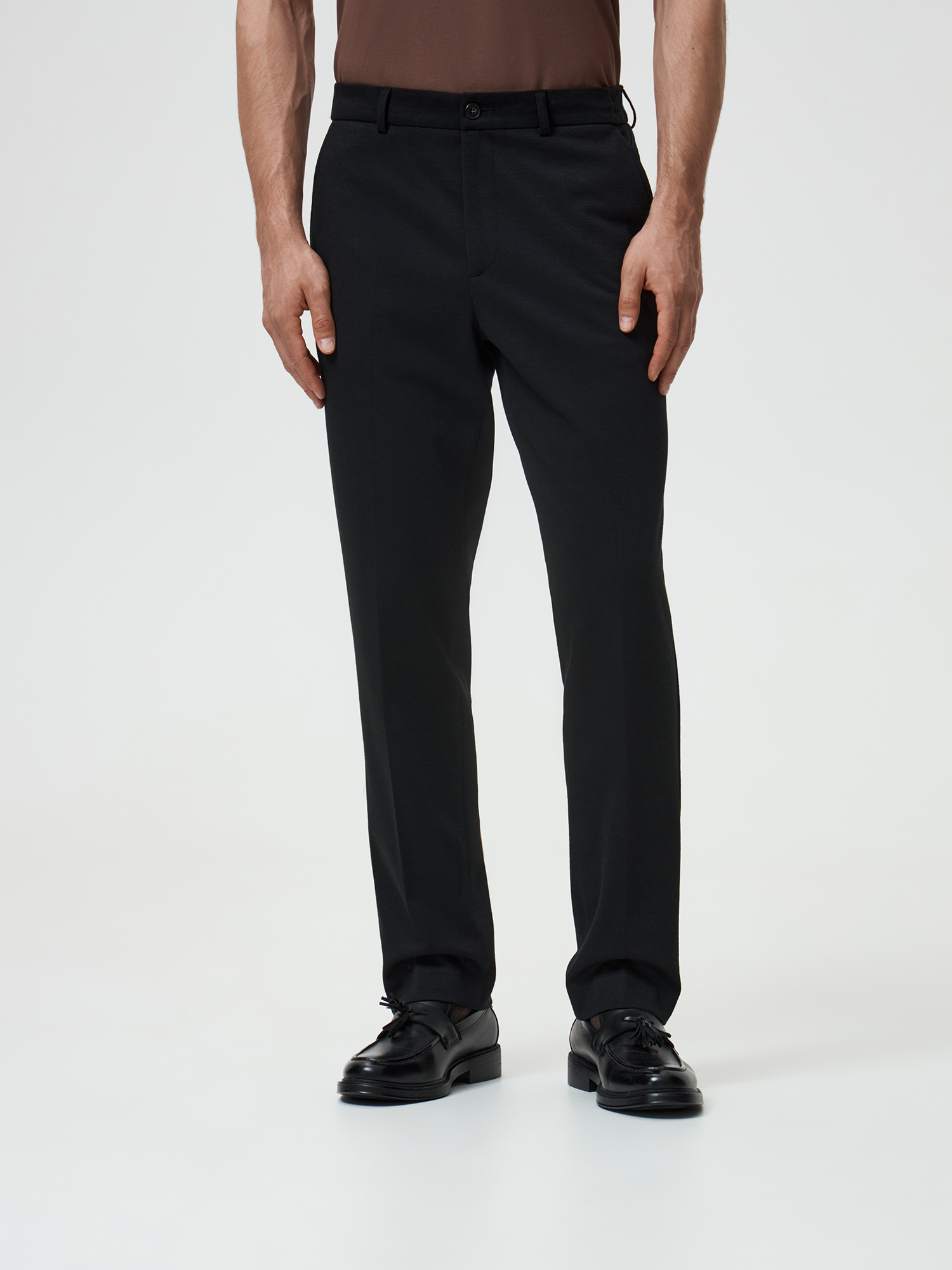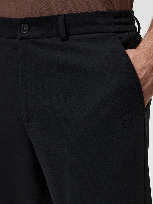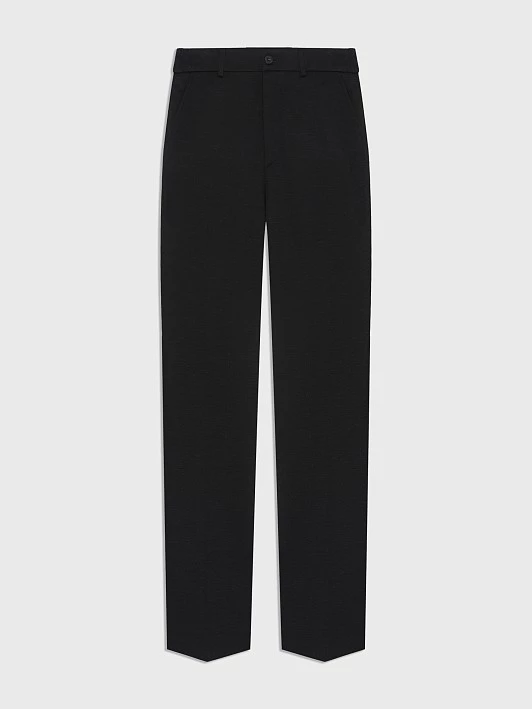 Черный цвет, классический крой и плотный трикотаж делают брюки универсальным элементом гардероба, который легко комбинируется с неформальными офисными пиджаками, рубашками, свитшотами и джемперами.