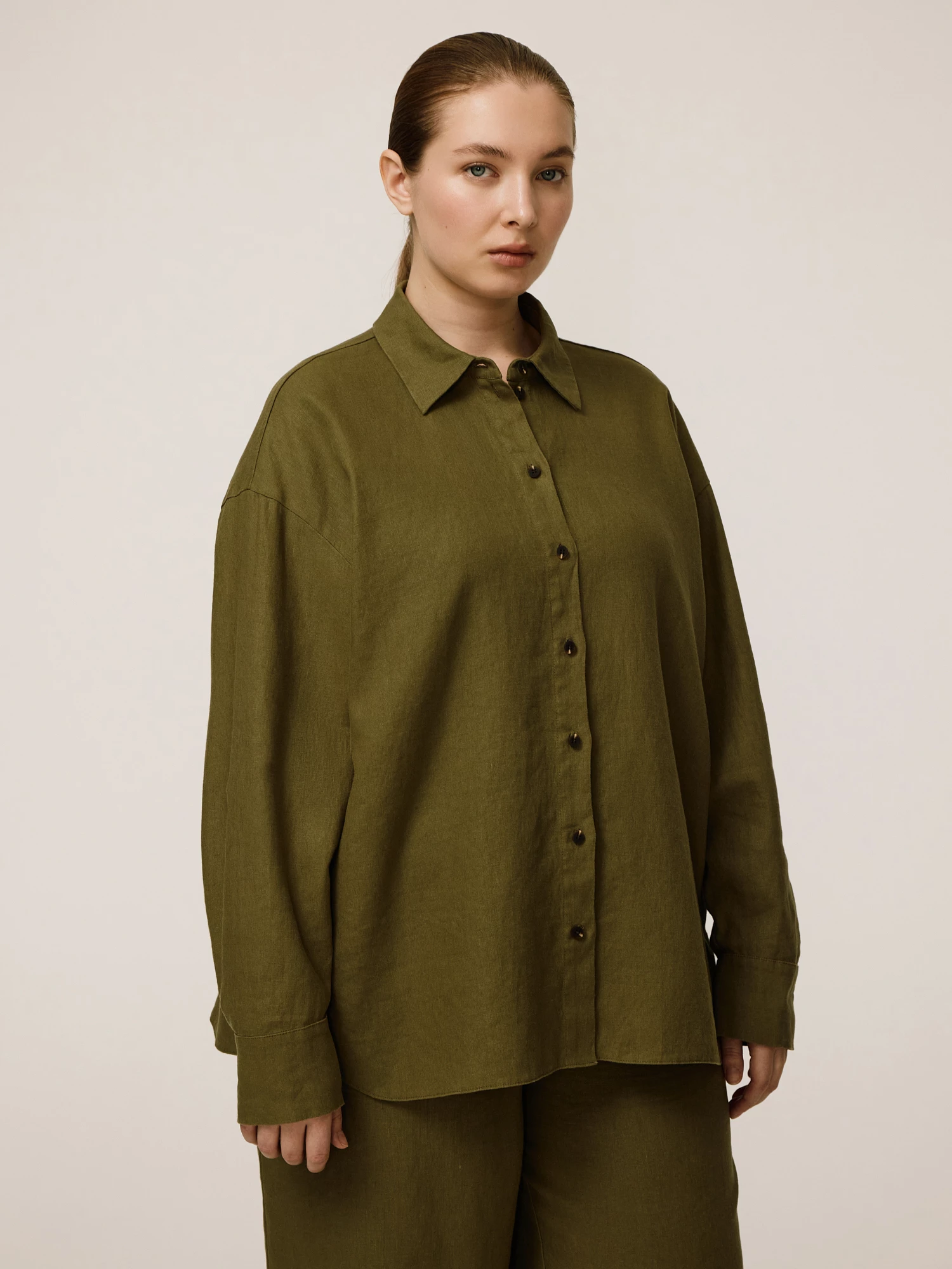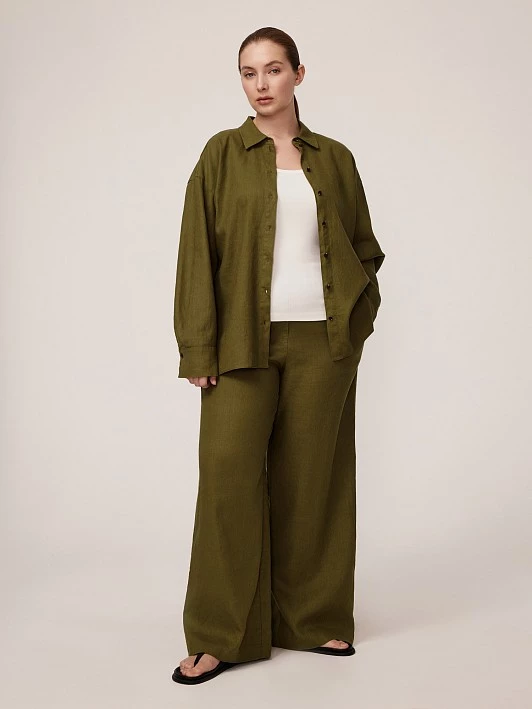 Бренд: LalisЦвет: ЗеленыйСостав: Лен - 100%Рост: 177Артикул: TR0549Параметры модели: 96 - 76 - 108Размер на модели: 50Коллекция: THE ENDLESS SEA