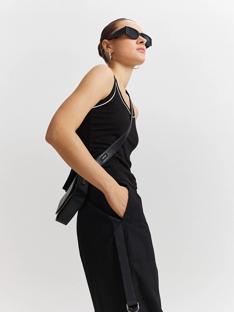 Черные брюки свободного кроя станут удачным выбором для теплого летнего дня. Модель выполнена из мягкого 100% хлопка, который хорошо пропускает воздух, прост в уходе и почти не ощущается на теле. Широкий пояс обеспечивает удобную посадку на талии. Шлевки, переходящие в декоративные ленты по бокам, добавляют образу изюминку и придают расслабленный и спортивный вид. В сочетании с футболками и свитшотами из коллекции создадут стильный и удобный образ на каждый день.
