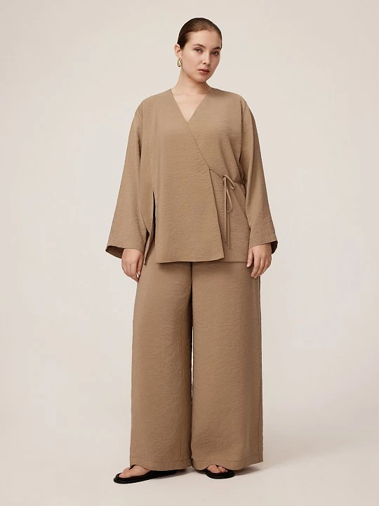 Струящиеся брюки из ткани производства Турции с эффектом крэш — это воплощение современной эргономичности и деловой эстетики. «Танин» – насыщенный, сложный оттенок коричнево-бежевого, напоминающий благородный дубильный экстракт, идеально подходит для создания стильных, статусных образов. Прямой крой с притачным поясом создает строгий силуэт, в то время как резинка по спинке обеспечивает неожиданную свободу движений и посадки. Боковая застежка на потайную молнию сохраняет чистоту линий, не жертвуя практичностью. Сшитые из ткани с эффектом легкого крэша, брюки сочетают экологичный модал с практичным полиэстером: это невероятная нежность, которая сохраняет безупречный вид весь день. Дышащая легкая модифицированная вискоза прекрасно дополняется прочным поливолокном, что улучшает как визуальные, так и функциональные характеристики полотна. Брюки, где каждая деталь выражает комфорт и уверенность, станут основой гардероба.