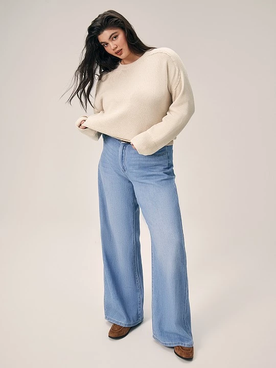 Свитер не крупной вязки с круглым вырезом и длинным рукавом. Привлекает внимание имитация фактурных швов. Выбрали для джемпера премиальную хлопковую итальянскую пряжу. Светло-бежевый джемпер будет востребован как школьный, офисный, нарядный, праздничный, базовый.