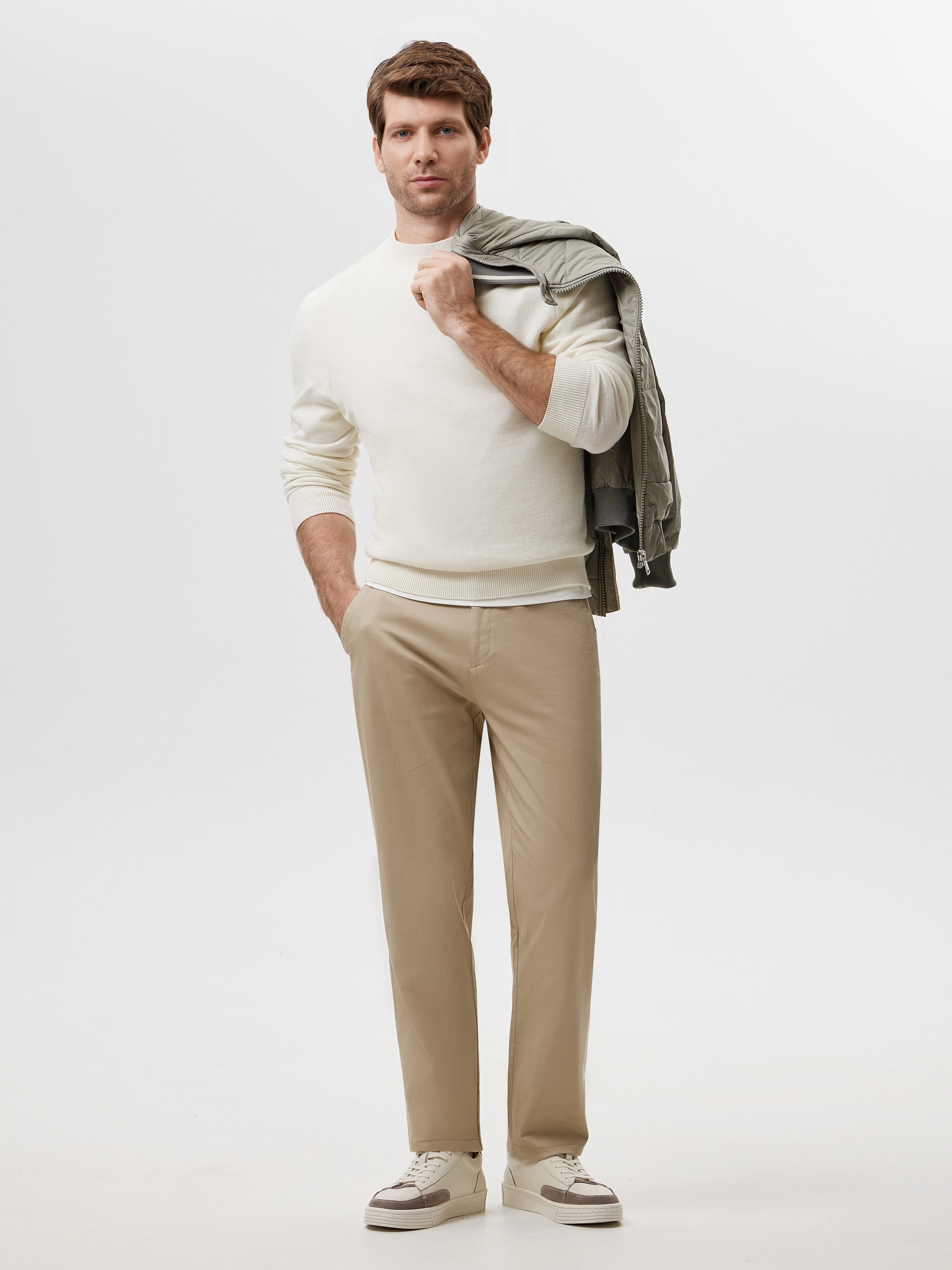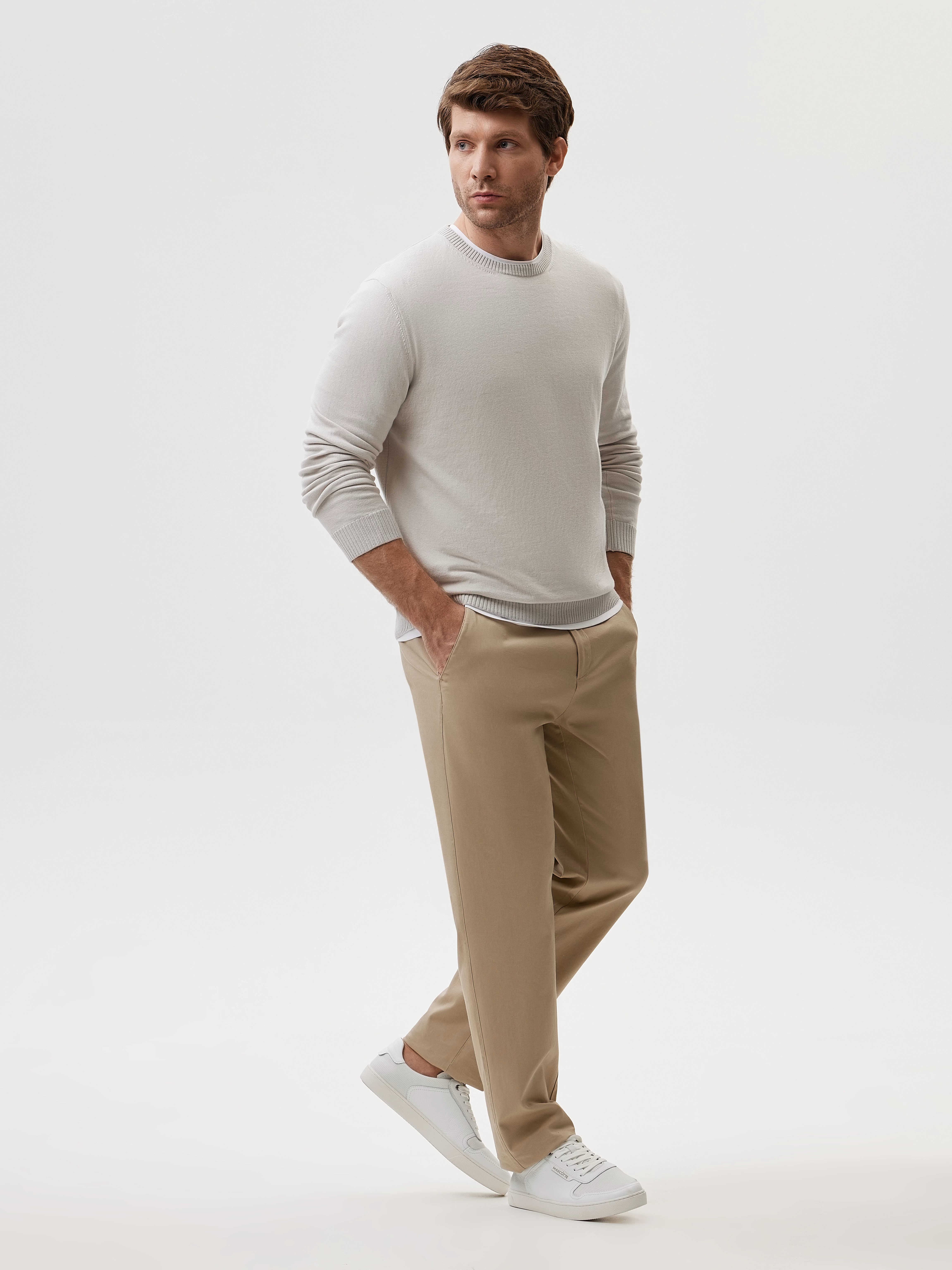 Базовый джемпер бежевого оттенка прямого силуэта. Модель с круглой горловиной, длинным рукавом с манжетами и комфортным поясом по низу изделия из приятной пряжи на основе длинноволокнистого хлопка, станет отличным выбором для создания стильного образа. Джемпер выполнен в технике эластичной вязки, что обеспечивает удобную посадку по фигуре. Он прекрасно сочетается со многими изделиями и подходит для создания повседневных образов с нестрогим дресс-кодом.