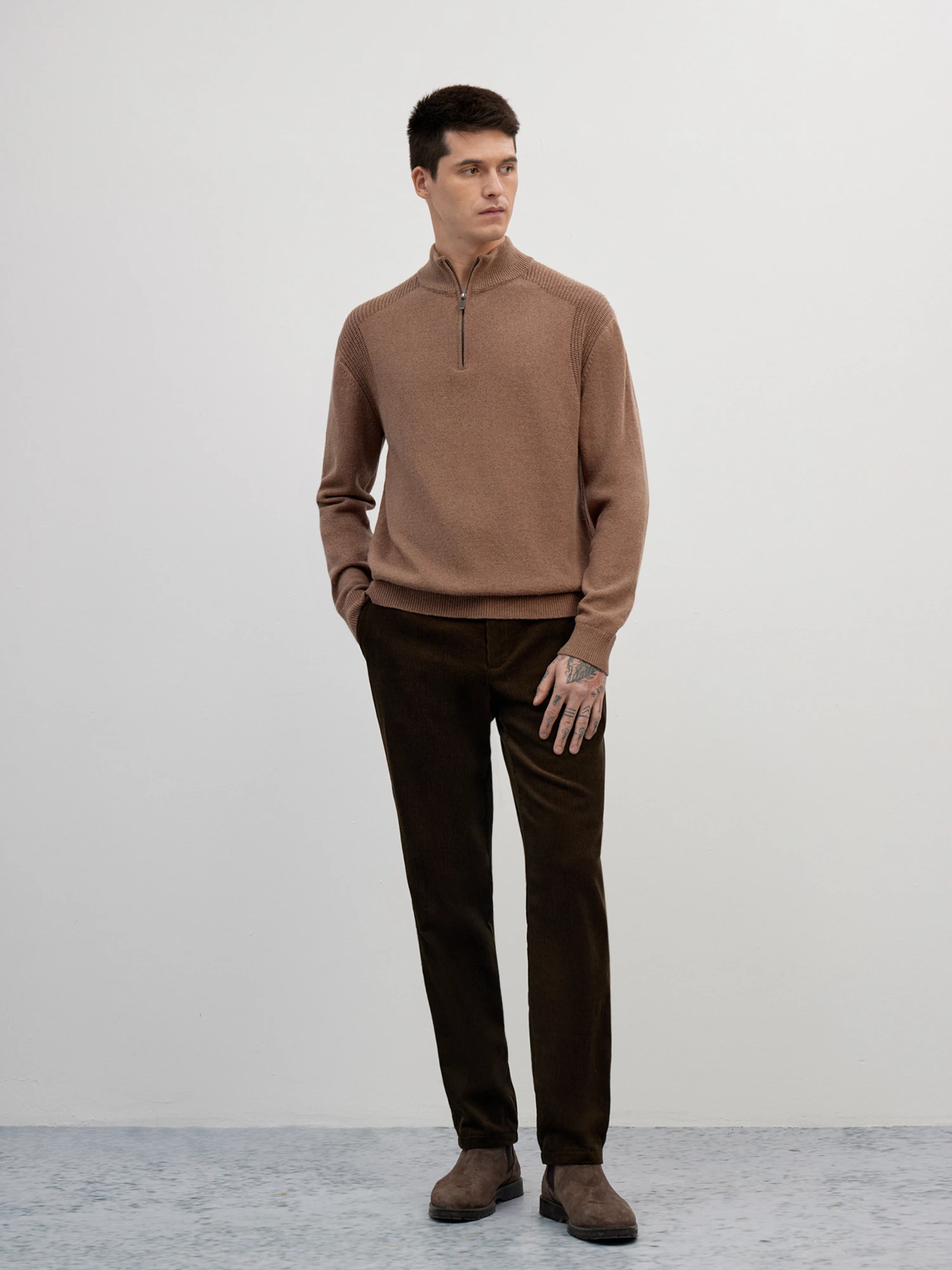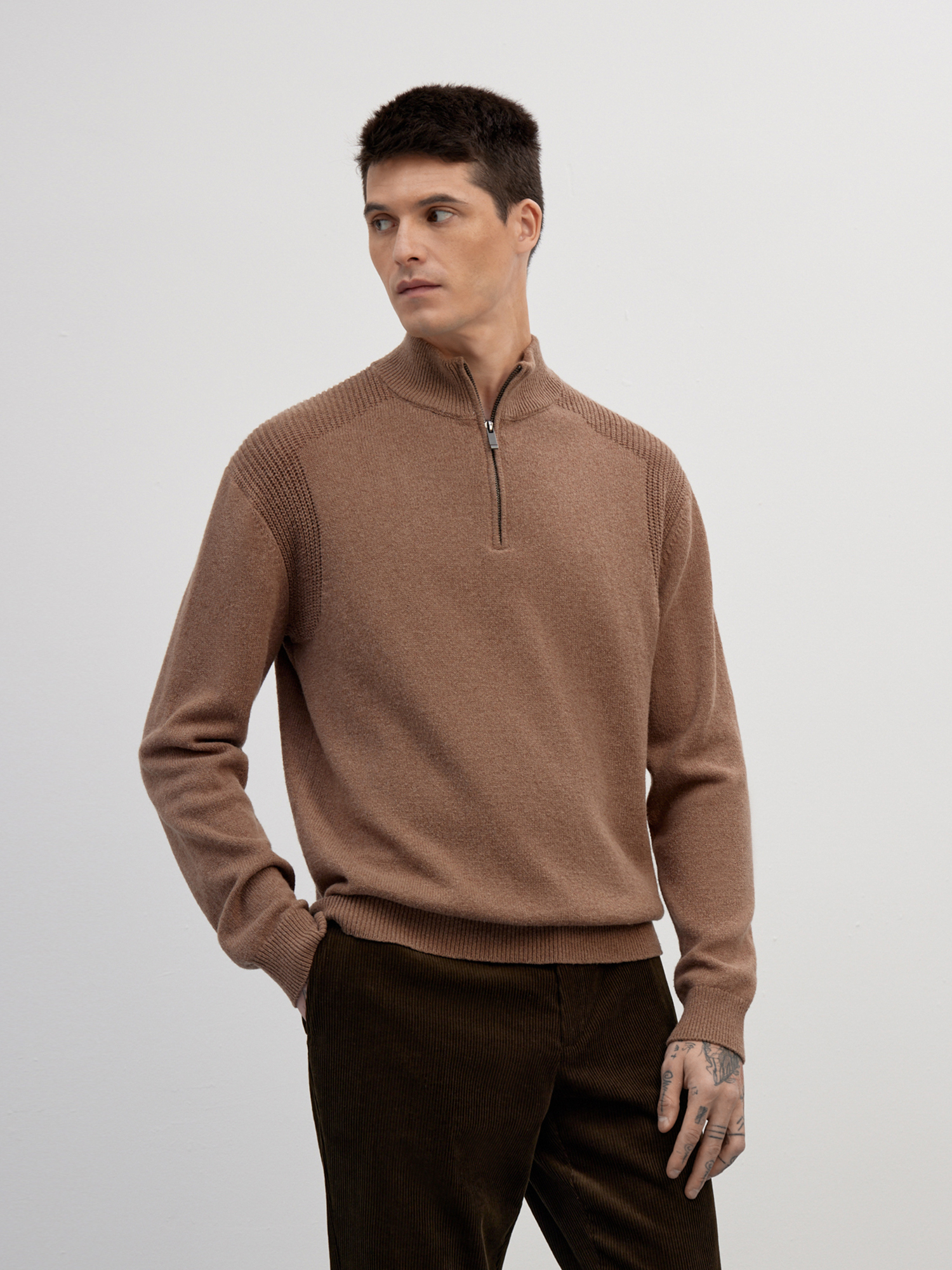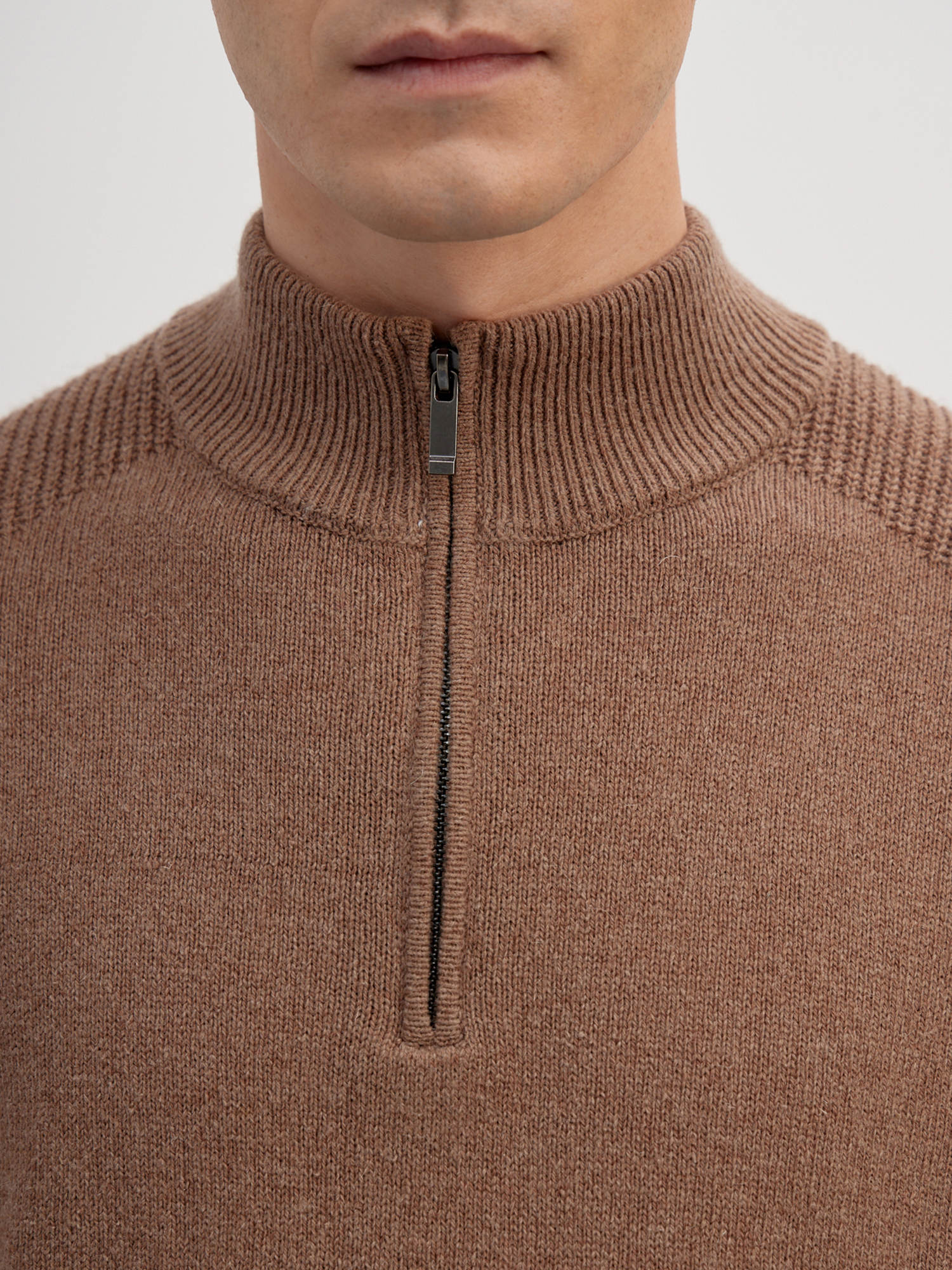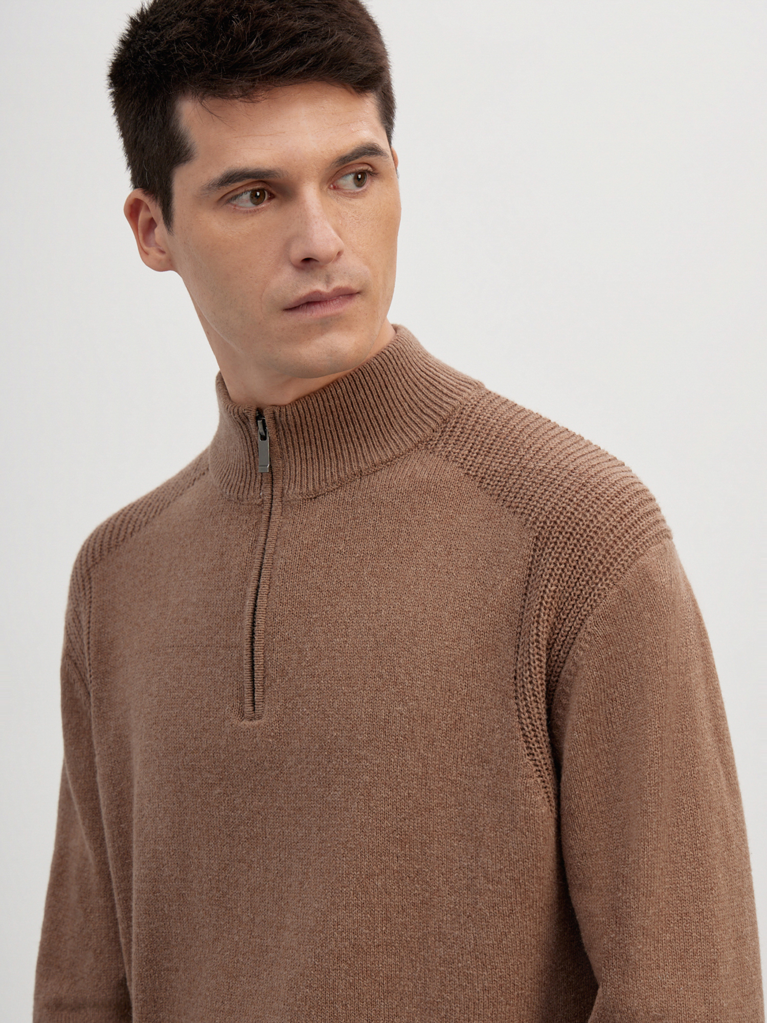 Стильный мужской джемпер с высоким воротником на молнии.