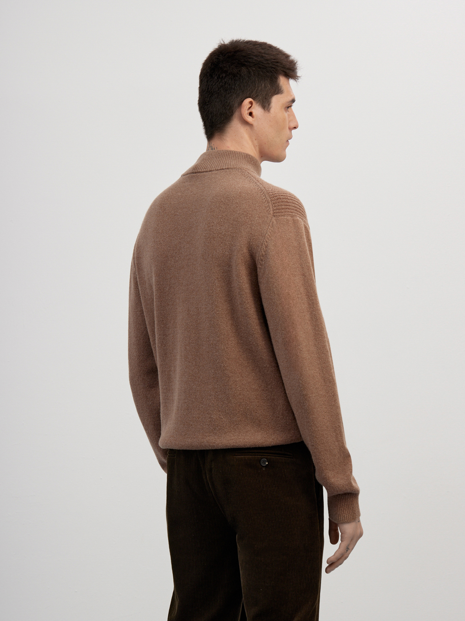 Для более сложного образа и дополнительного тепла, джемпер можно сочетать с рубашками или базовыми футболками из нашей коллекции.
