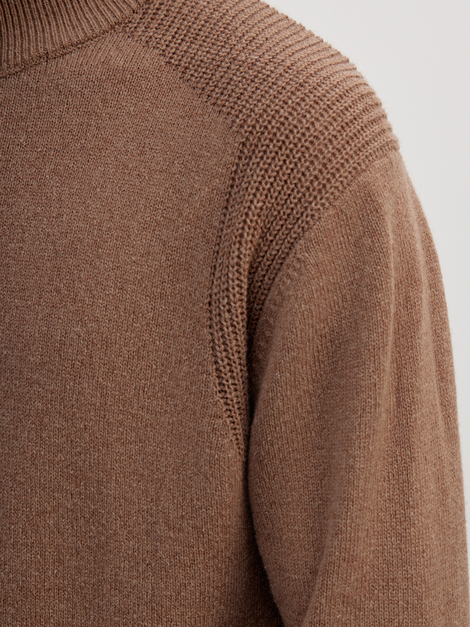 Выполнен из натуральной овечьей шерсти гладкой вязки со вставками крупного фактурного плетения на линии плеч. Чтобы придать изделию утепление, к хлопковой пряже была добавлена натуральная овечья шерсть. А для увеличения износостойкости – волокна нейлона.