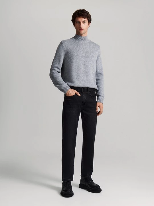 Классические зауженные джинсы-пятикарманники базового черного цвета, в соответствии с современными тенденциями, выполнены с эффектом легкой потертости. Модель с традиционной застежкой на молнию и болт с логотипом бренда, с достаточно высокой посадкой. Пояс со шлевками дополнен брендированной нашивкой с тиснением. Темные молодежные джинсы из натурального хлопка хорошо впишутся в рациональный гардероб.