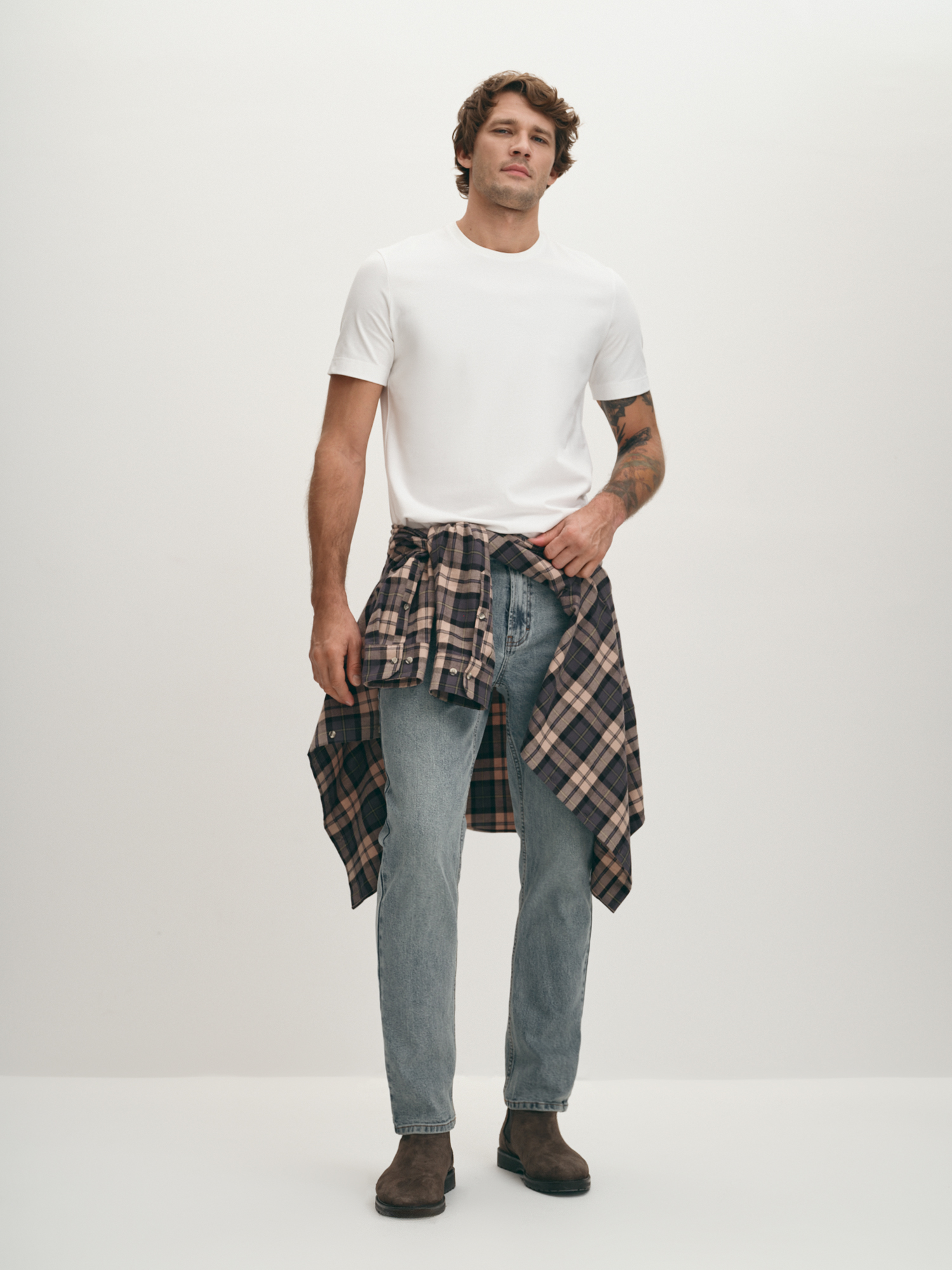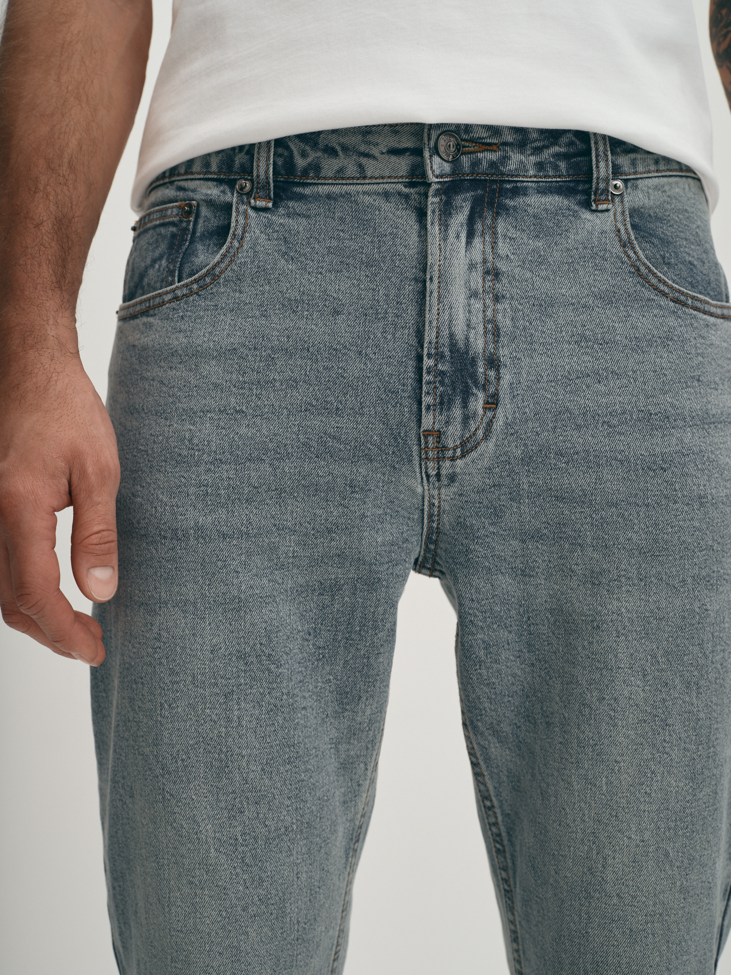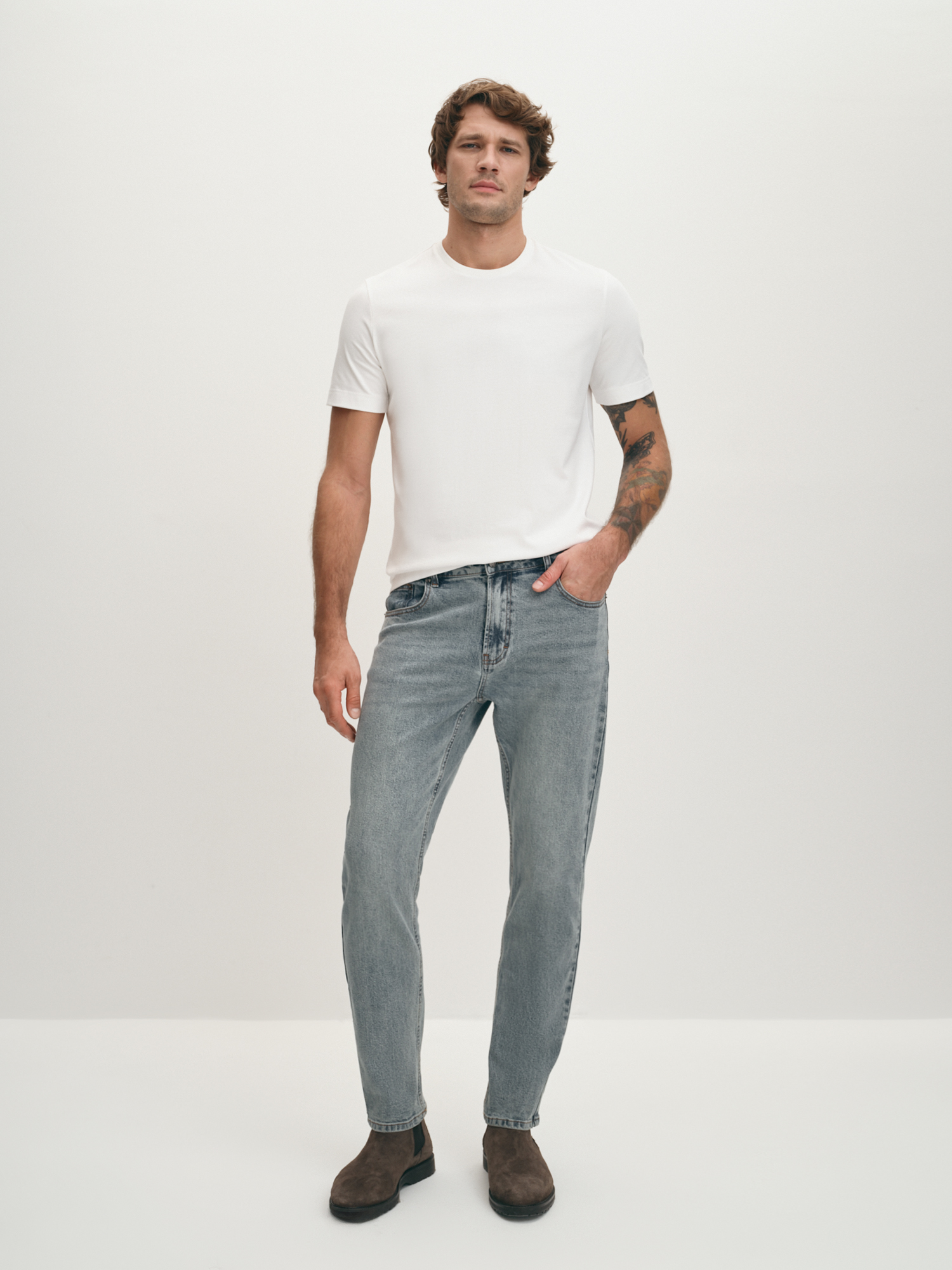 Универсальные джинсы полуприлегающего силуэта из плотного и слегка эластичного хлопкового денима. Базовая модель серо-голубого оттенка пригодится в любом гардеробе. Джинсы сочетаются с одеждой как в спортивном и кэжуал стиле и отлично подходят под рубашки и поло как с длинным, так и с коротким рукавом.