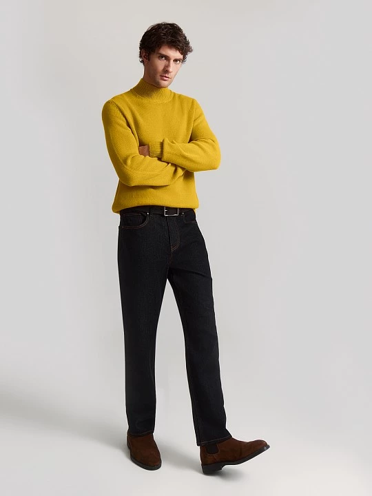 Классические прямые джинсы-пятикарманники базового черного цвета, в соответствии с современными тенденциями, выполнены с эффектом легкой потертости. Модель с традиционной застежкой на молнию и болт с логотипом бренда, с достаточно высокой посадкой. Пояс со шлевками дополнен брендированной нашивкой с тиснением. Темные джинсы из натурального хлопка хорошо впишутся в рациональный гардероб.