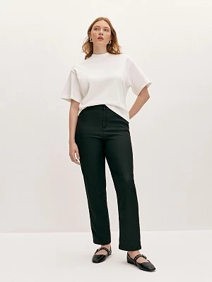 Джинсы-пятикарманники базового чёрного цвета с актуальной высокой посадкой выполнены из плотного фирменного денима премиального качества. Модель прямого силуэта с притачным поясом, со шлёвками под ремень, боковыми карманами, часовым карманом спереди и накладными американскими сзади. Джинсы в стиле casual станут альтернативой брюкам для нестрогих офисных образов, а в сочетании с джемперами и футболками дополнят неформальные городские луки.
