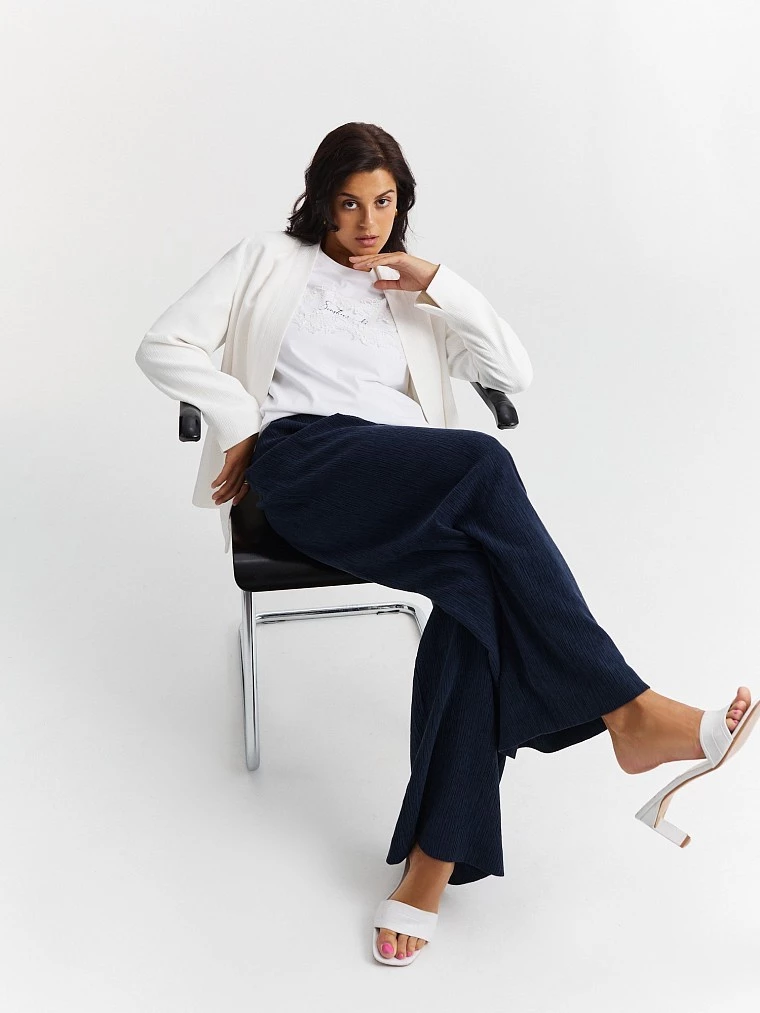Бренд: LalisЦвет: БелыйСостав: Хлопок - 100%Артикул: TS0057KРазмер на модели: 50Коллекция: ЛЕТНИЕ ИСТОРИИ