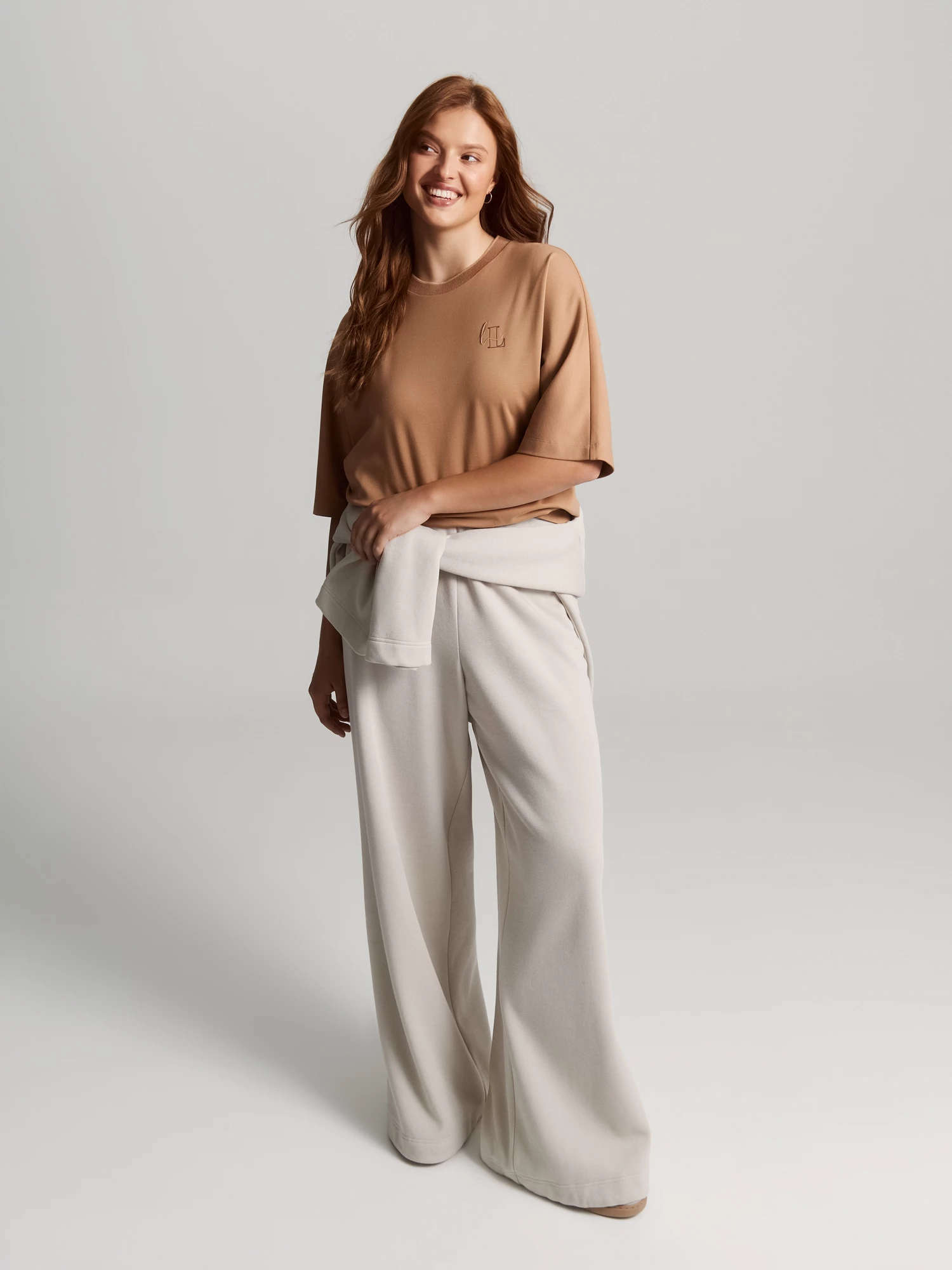 Фирменная вышивка на груди - визуальная подпись дизайнеров бренда. Модель цвета тростникового сахара прекрасно вписывается в осенне-зимнюю палитру.