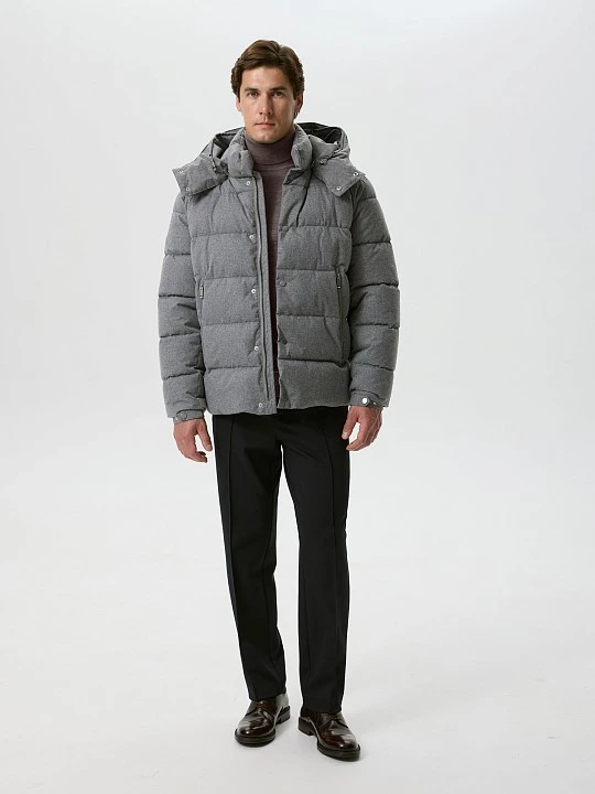 Стильный пуховик силуэта regular подойдет для образа в спортивном, кэжуал и смарт кэжуал стиле. Модель хорошо защищает от холодного ветра, выполнена с воротником-стойкой и съемным капюшоном с дополнительной фиксацией на кнопки, манжет втачного рукава на резинке и кнопке. Пуховик дополнен косыми боковыми карманами и внутренними - накладным и прорезным на молнии. Застежка на молнию и ветрозащитный наружный клапан на кнопках. Для стилизации куртка декорирована брендированным патчем, созданным на собственном производстве с применением современной технологии лазерной резки. Осенне-зимний пуховик выполнен из качественной нейлоновой плащевой ткани с влагозащитной пропиткой с визуальным эффектом текстиля и утеплен синтепухом. Синтепух - это современный высокотехнологичный наполнитель, отличающийся легкостью, упругостью и хорошими теплоизоляционными свойствами. Благодаря горизонтальной стежке, выполненной на собственном производстве, наполнитель правильно распределен внутри изделия и надежно зафиксирован. Меланжевый серый хорошо сочетается с денимом, моделями из костюмной ткани и из трикотажного полотна капсулы.