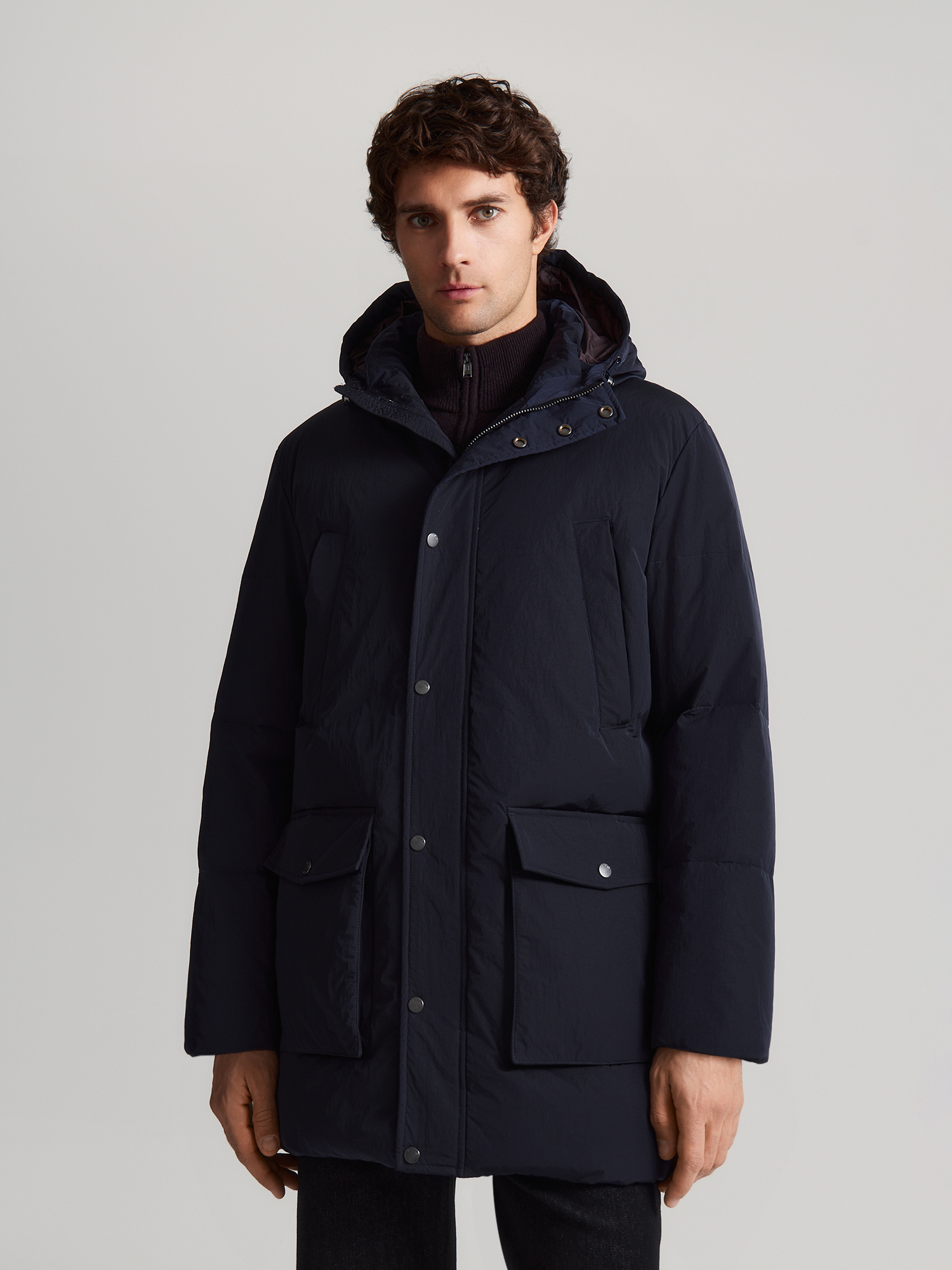 Теплая куртка из качественной водоотталкивающей ткани с четырьмя наружными карманами, подходит для осени и зимы. В области проймы пуховик дополнен двумя небольшими вентиляционными отверстиями.Модель делает теплее и уютнее капюшон на кулисе и шнуре и внешний ветрозащитный клапан. Качественный наполнитель из пуха и пера (индекс Fill Power 630-650) делает модную модель очень теплой и ультралегкой. Наполнитель равномерно распределен внутри пуховой куртки благодаря упаковке из пуходержащей ткани и дополнительно зафиксирован горизонтальной стежкой. Образ можно дополнять вязаными шапками, шарфами и перчатками, произведенными на наших собственных фабриках. Если подобрать размер пуховика на один-два больше обычного, можно формировать модный силуэт оверсайз. Oversize универсален, подходит для офиса, прогулок, спорта. Базовый темно-синий цвет сочетается с нейтральными цветами, а также с насыщенными и яркими оттенками. Индекс Fill Power 630-650 - это показатель натуральных наполнителей премиум-класса.