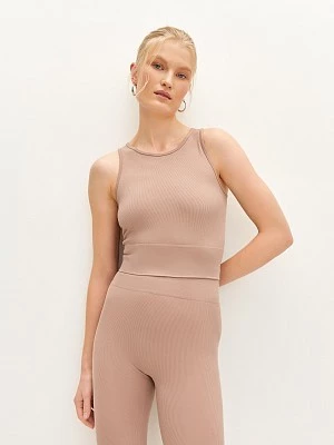 Укороченная майка-топ станет отличной базой для спортивного образа. Эластичный фирменный трикотаж легок в уходе, хорошо тянется и держит форму не растягиваясь. Модель прилегающего силуэта мягко облегает фигуру, а круглый вырез и бретели эстетично подчеркивают линию плеч. Широкий пояс дополнительно поддерживает мышцы, поэтому в изделии будет комфортно на тренировке любой интенсивности. Модель идет в капсуле в трех цветах: черном, зеленом и бежевом. Рекомендуется комбинировать с шортами или леггинсами из нашей коллекции.