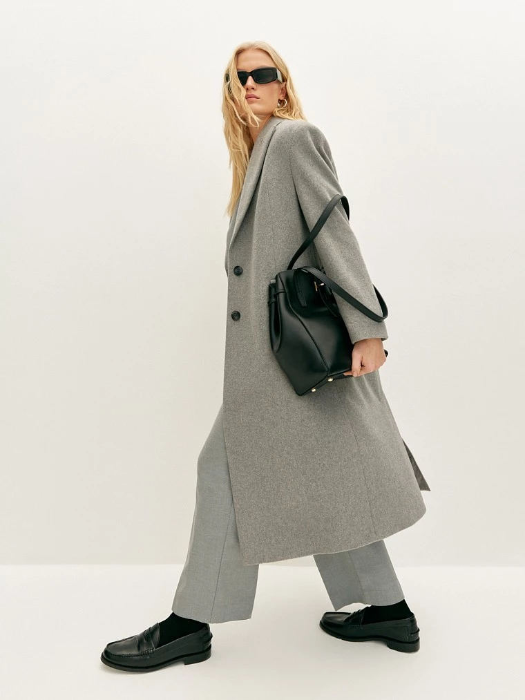 Стильное однобортное пальто прямого силуэта спокойного серого оттенка. Качественная пальтовая ткань на основе овечьей шерсти с добавлением волокон вискозы имеет особенно приятную текстуру ворса и поддерживает оптимальную температуру. Модель дополнена аккуратными карманами с клапаном и застегивается на две пуговицы. Глубокий отложной воротник с заостренным лацканом подчеркивает линию шеи. Классическое пальто легко станет базовым в гардеробе.