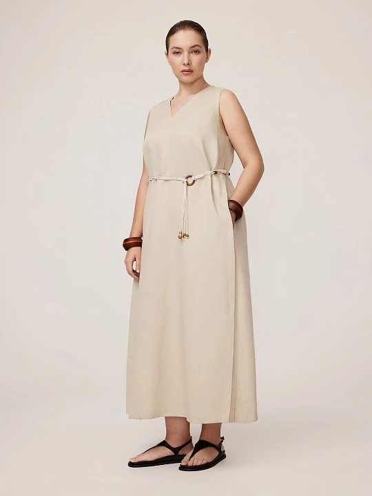 Бренд: LalisЦвет: ПесочныйСостав: Лен - 54%, Вискоза модифиц - 46%Рост: 177Артикул: DR0917Параметры модели: 96 - 76 - 108Размер на модели: 50Коллекция: SANDY BEACH