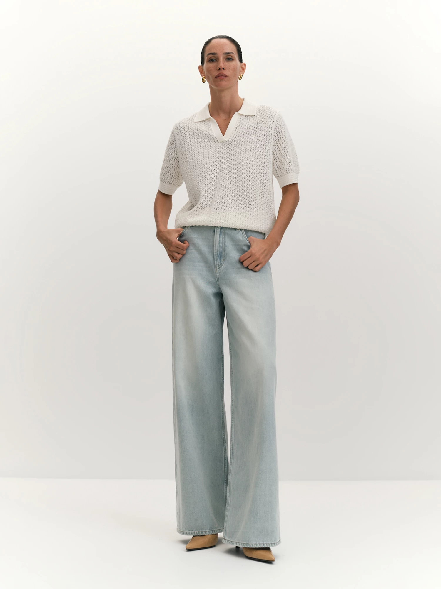 Вязаное поло без застежки с фактурными деталями и перфорацией на вязаных резинках сочетает в себе элементы кэжуал и спортивного шика, становясь универсальным для различных ситуаций. Поло выполнено с акцентом на фактуру вязаного полотна, что придаёт изделию уникальность и оригинальность. Ажурное ромбовидное переплетение создает легкий и изящный образ, который подчеркивает фигуру, не стесняя движений. Высокий, 12-й класс вязки гарантирует тонкость и качество вязаного полотна. Точное исполнение по лекалам и использование кеттельного оборудования с высокой долей ручного труда гарантирует качество и долговечность изделия, что делает его отличным выбором для ценителей стиля и комфорта. Воротник поло, манжеты и низ изделия оформлены с перфорацией, что не только добавляет оригинальности, но и способствует легкости. Этот прием позволяет выглядеть стильно и непринужденно, сохраняя при этом комфорт и свободу движений. Высокий, 12-й класс вязки гарантирует тонкость и качество вязаного полотна, а точное исполнение по лекалам и использование кеттельного оборудования с высокой долей ручного труда обеспечивают долговечность и премиальное качество изделия. Поло выполнено из комбинации рами, модифицированной вискозы и спандекса, что обеспечивает отличную воздухопроницаемость, мягкость и комфорт при носке. Рами — натуральное волокно, получаемое из стеблей бамбука, — придает изделию прочность и устойчивость к износу, а спандекс добавляет эластичность, обеспечивая идеальную посадку по фигуре. Модель представлена в классическом белом цвете, который символизирует чистоту и элегантность, подчеркивая фактурные детали изделия и делая их более выразительными. Такое поло — идеальный выбор для тех, кто ценит стиль, комфорт и внимание к деталям.