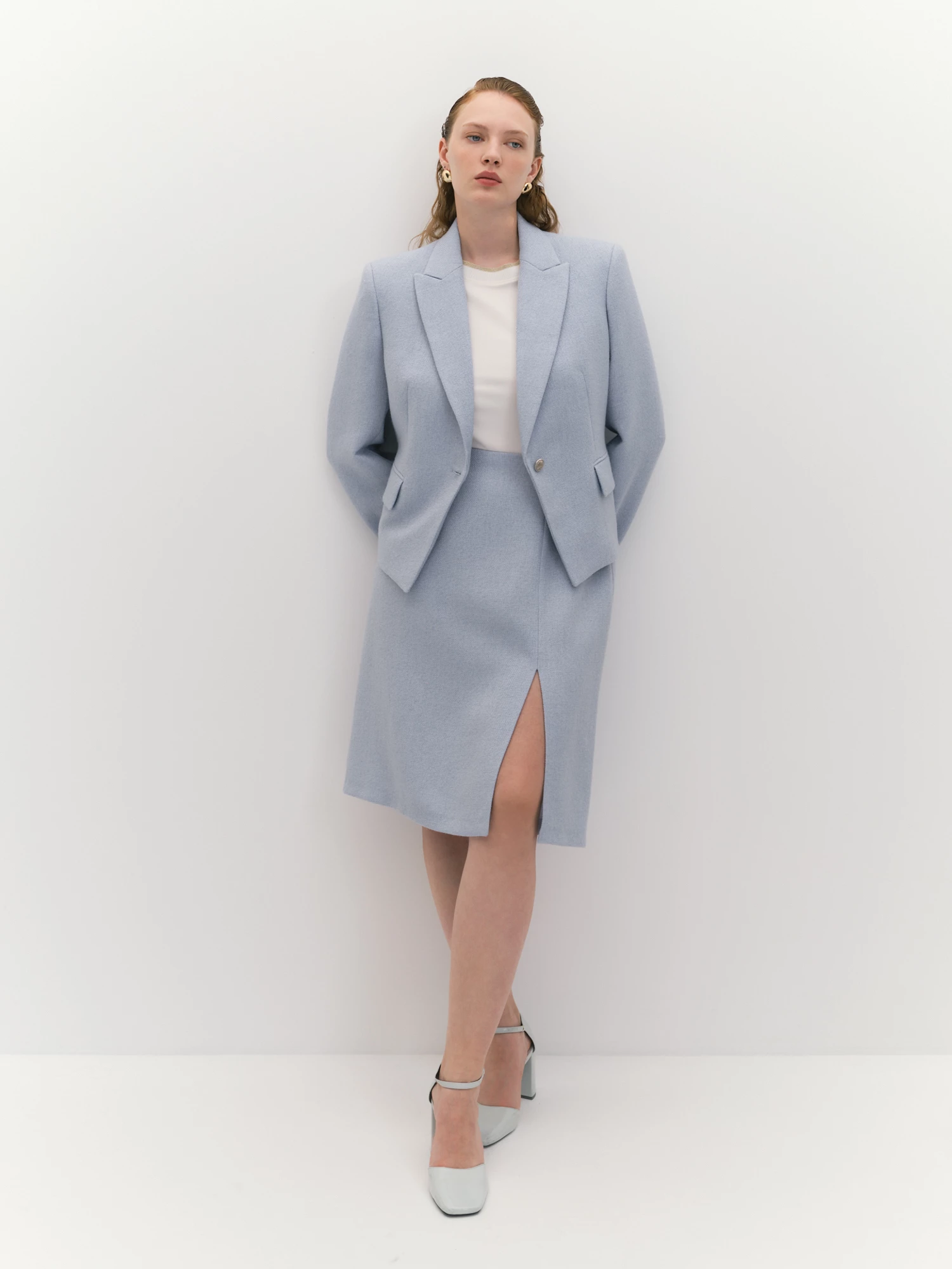 Бренд: LalisЦвет: ГолубойСостав: Верх:Полиэстер - 90%, Овечья шерсть - 10%.Подкладка:Полиэстер - 55%, Вискоза - 45%Артикул: JC0145Размер на модели: 50Коллекция: NOT SO CLASSIC