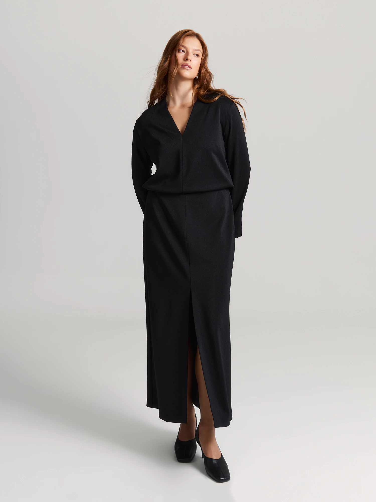 Классический чёрный цвет делает юбку универсальной. Её можно носить с блузой BL1729K как вечерний образ или с вязаным джемпером - как дневной.