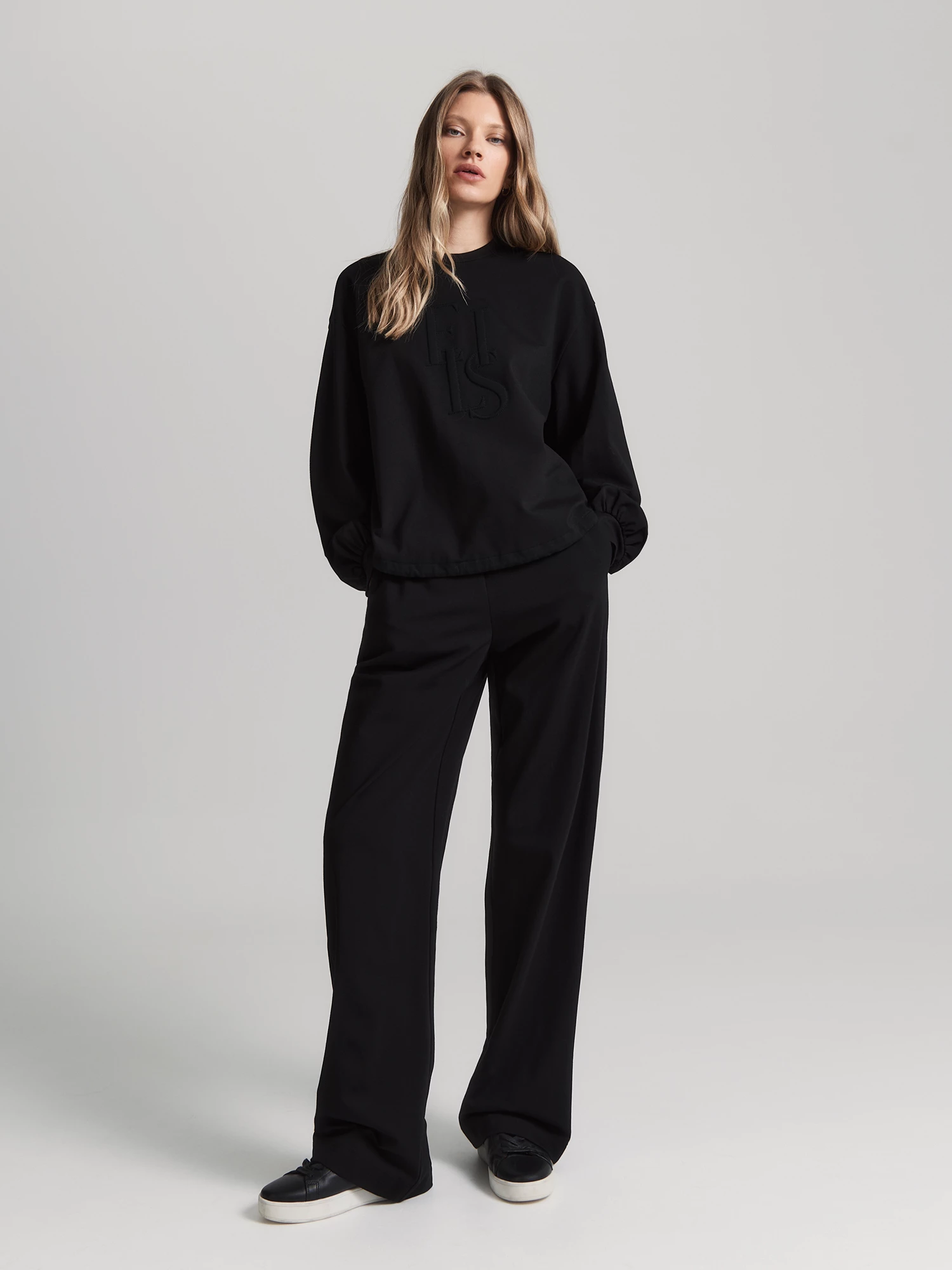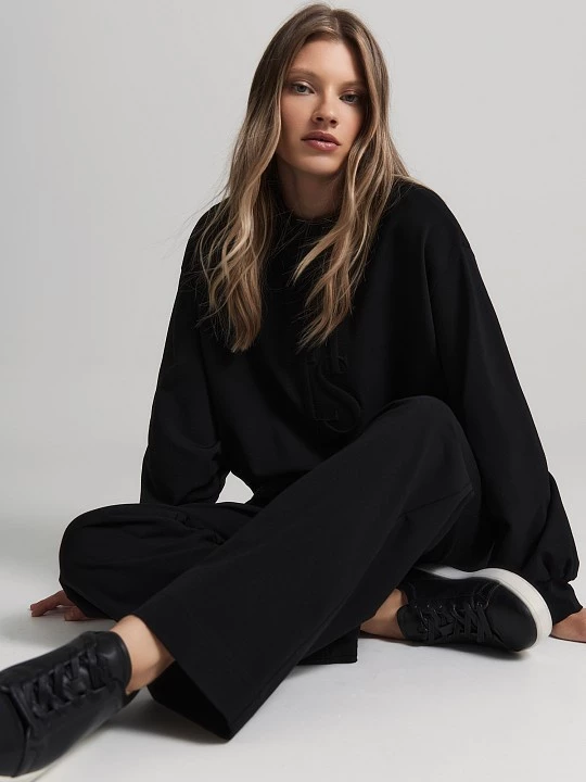 Классический черный цвет делает брюки универсальными. Их можно носить с футболками, свитшотами для прогулок, отдыха или повседневных образов. Свитшот BS0063K выполнен из такого же трикотажа и прекрасно сочетается с брюками.