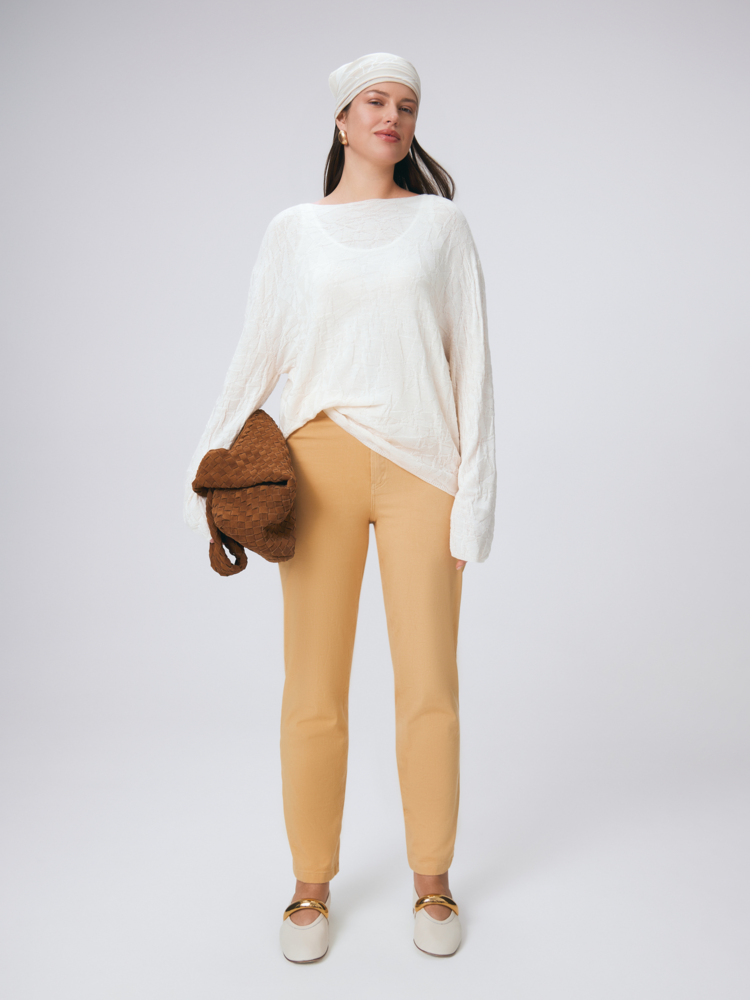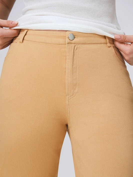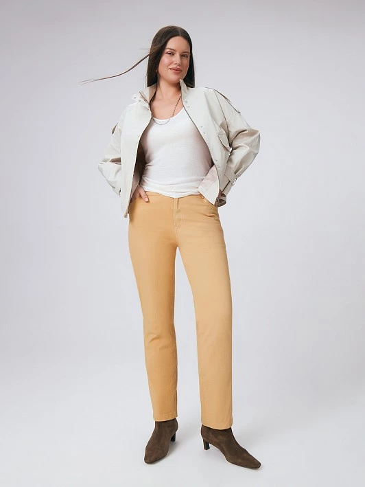 Модель джинсов выполнена в силуэте mom fit, что делает их идеальными для создания комфортного и модного образа. Прямой, слегка зауженный книзу силуэт обеспечивает удачное сочетание классического и современного стилей, что позволяет легко интегрировать их в различные образы. Высокая посадка джинсов акцентирует внимание на талии, подчеркивая женственные формы, а пять карманов обеспечивают функциональность и удобство в повседневной носке. Классическая застежка на молнию обеспечивает надежную фиксацию, а брендированный болт добавляет особый акцент, подчеркивающий внимание к деталям. Брендированные хольнитены не только декоративный элемент, но и символ качества и стиля. Кокетка сзади обеспечивает хорошую посадку, что делает модель более удобной и привлекательной. Джинсы имеют лаконичный крой и не подлежат варке или иной обработке, что позволяет сохранить их оригинальный внешний вид. Изготовленные из цветного денима, эти джинсы выглядят стильно и современно, а также идеально вписываются в повседневный весенне-летний гардероб. Благодаря своей универсальности и нейтральному дизайну их легко сочетать с различными верхами, обувью и аксессуарами, что делает их отличным выбором для любого случая. Материал, из которого изготовлены джинсы, состоит из хлопка с добавлением спандекса, что придает им комфортную растяжимость. Это обеспечивает свободу движений и позволяет чувству комфорта в течение всего дня. Уход за джинсами также довольно прост: для того чтобы сохранить цвет и форму, рекомендуется стирать их вывернутыми наизнанку вместе с изделиями одинакового цвета. Такой подход поможет предотвратить выцветание и сохранит их первозданный вид на долгое время, что делает эту модель не только стильной, но и практичной.