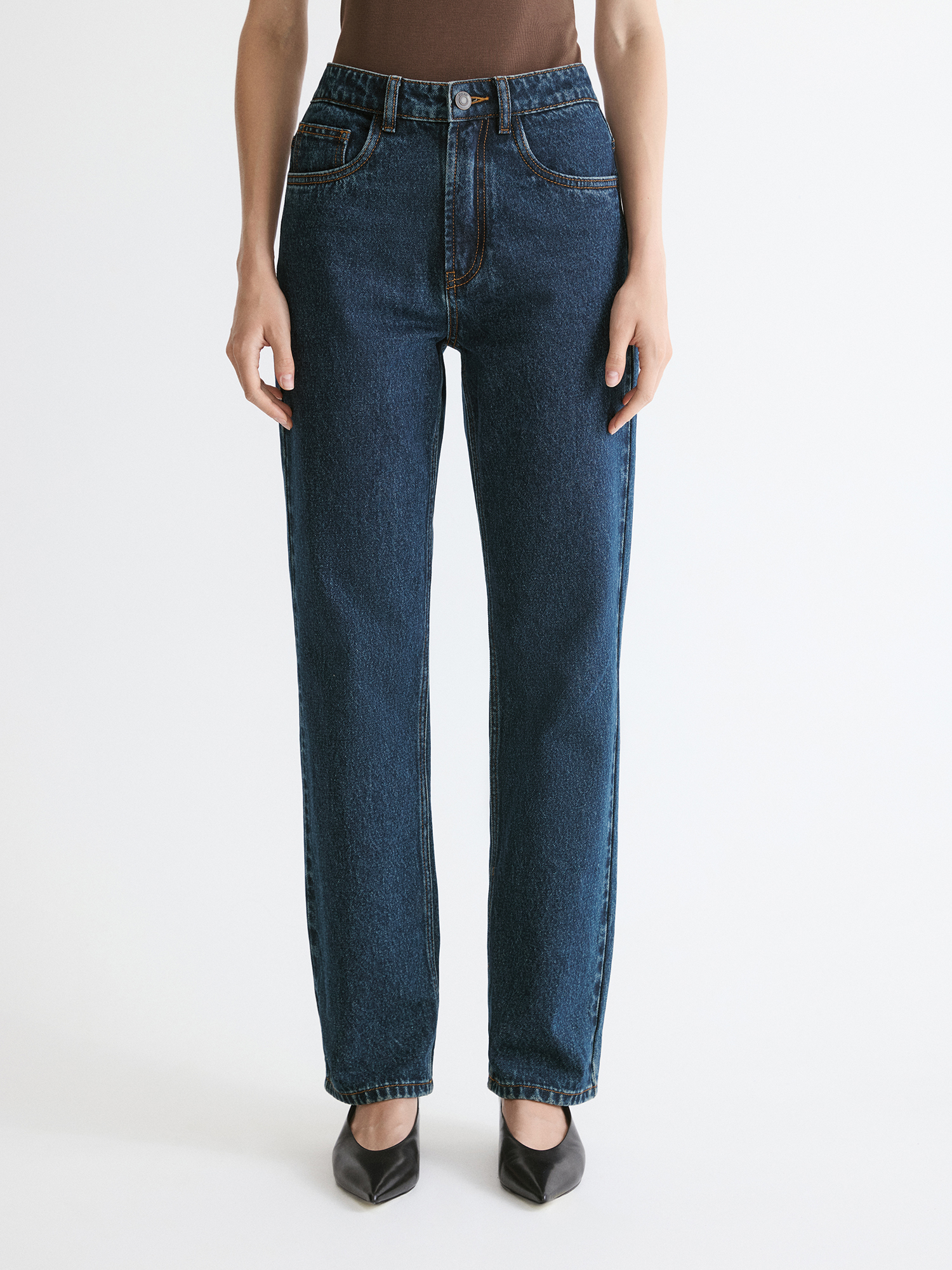 Универсальный темно-синий цвет и лаконичный крой позволяют носить эти джинсы с чем угодно: можно сочетать с рубашкой для нестрогого офиса, с футболкой для встречи с друзьями или с джемпером для работы и отдыха.