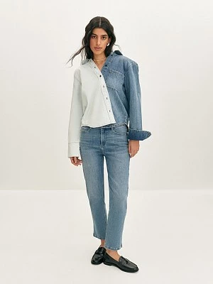 Джинсовая рубашка синего цвета с эффектом лёгких потёртостей, с широким отложным воротником и карманом на груди сшита из прочного хлопка с винтажной варкой. Фирменный хлопковый деним износостойкий, мягкий и комфортный в носке. Модель прямого кроя подчеркнет достоинства вашего силуэта, а также придаст образу дерзости и неформальности. Рекомендуется комбинировать с брюками деним из комплекта.
