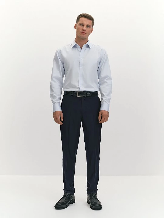 Технология non iron (или "не требует глажки") создана для занятых мужчин, ценящих практичность и стиль, она упрощает уход за рубашкой, сохраняя её опрятный вид даже после стирки. Non iron - это специальная обработка ткани, которая позволяет сохранить опрятный вид рубашки, минимизируя необходимость утюжки. Модель лаконичного дизайна сочетает строгость и современность. Отложной воротник на отрезной стойке и застежка на планку с пуговицами дисциплинируют, а узкая кокетка на спине и закругленный низ придают современный акцент, подчеркивая внимание к деталям. Рубашка выполнена из хлопка, который обеспечивает высокий уровень комфорта, гипоаллергенность и воздухопроницаемость, делая её приятной для ношения в течение всего дня. Голубой цвет создает свежий и стильный образ, подходящий для офиса и повседневной носки. Он легко комбинируется с другими элементами гардероба. Силуэт slim обеспечивает комфортное облегание, подчеркивая фигуру. Такой эффект стал возможен благодаря выверенным вертикальным вытачкам на спине. Отложной воротник на косточках сохраняет форму и добавляет рубашке элегантности, а длинный втачной рукав с манжетом позволяет регулировать длину, создавая аккуратный вид. Узкая кокетка на спине улучшает посадку, а закругленный низ добавляет удобство при ношении навыпуск. Такая рубашка подчеркнет стиль и добавит образу элегантности в любой ситуации.