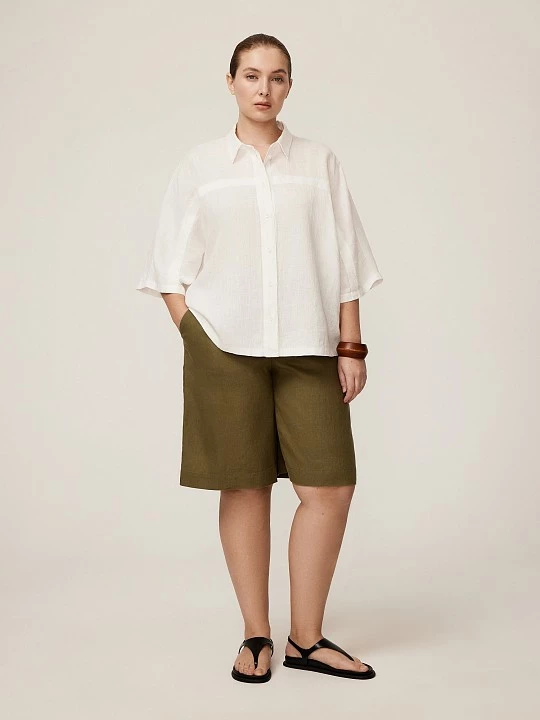 Шорты выполнены в лучших традициях кэжуальной эстетики. Прямые, свободные, они дарят комфорт и свободу движений, подчеркивая естественные линии фигуры. Традиционная застежка на молнию обеспечивает удобство и поддержку, не сдавливая талию. Притачной пояс со шлевками и резинкой по спинке обеспечивает идеальную посадку по талии, а функциональные косые боковые карманы повышают функциональность, добавляя место для хранения мелочей. Модульная система, то есть возможность комбинировать с блузой, расширяет вариативность количества образов. Лен, как экологичный материал, подчеркивает заботу о природе, ведь каждая часть растения используется в производстве. Дышащий и гипоаллергенный, он создает подходящий микроклимат для кожи - прекрасно пропускает воздух, регулирует температуру тела и мгновенно впитывает влагу, что помогает ощущать свежесть даже в жаркие дни. Лен практичен, он обладает природной прочностью, становясь со временем становится только мягче и при этом сохраняет свои антибактериальные свойства, оставаясь гигиеничным и безопасным. Смелый оттенок "гуакамоле"— этот насыщенный желто-зелёный цвет с лаймовым подтоном, напоминающий мякоть спелого авокадо, заряжает энергией и радостью, создавая настроение лёгкости и гармонии с природой. Он для тех, кто предпочитает яркие, но благородные акценты в своём стиле. Усилить цвет-настроение и его положительную энергию поможет рубашка BL1593, которая прекрасно дополнит шорты.