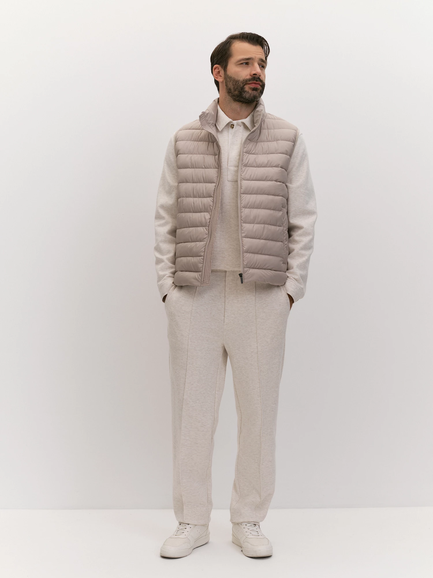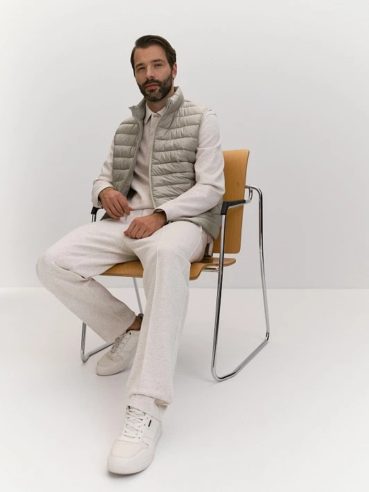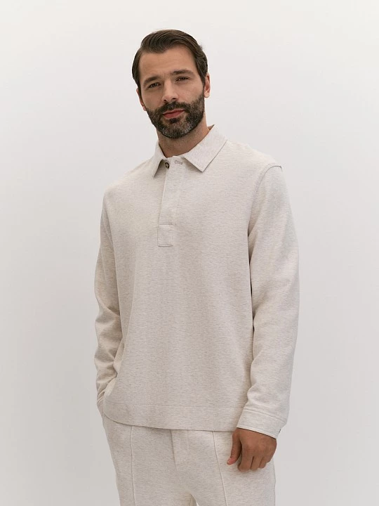 Создали свитшот с актуальным воротником-поло и удобной частично скрытой застежкой. Втачной рукав со спущенным плечом комфортен, выполнили его с рубашечным манжетом с застежкой на пуговицу для поддержания стиля изделия. Нарочито объемные, рельефные швы модели, вместе с разрезами по бокам подчеркивают линии кроя и свободный силуэт изделия. Выбранный для модели хлопковый трикотаж гипоаллергенен, хорошо дышит, удобен в эксплуатации и не требует дополнительного ухода. Меланжевые ткани всегда имеют базовый цвет, к которому подбираются нити других оттенков, близких к основному. В итоге получается интересный цветовой эффект, его называют оптикой меланжа. Такое полотно экологично, ведь при его производстве используется меньше воды и энергии, чем при традиционных методах окрашивания. «Античный белый" цвет свитшота – актуальный оттенок, прекрасно подходящий для переходного периода. Костюм из такой же качественной хлопковой ткани уже доступен от бренда ELIS, есть возможность подобрать family look.