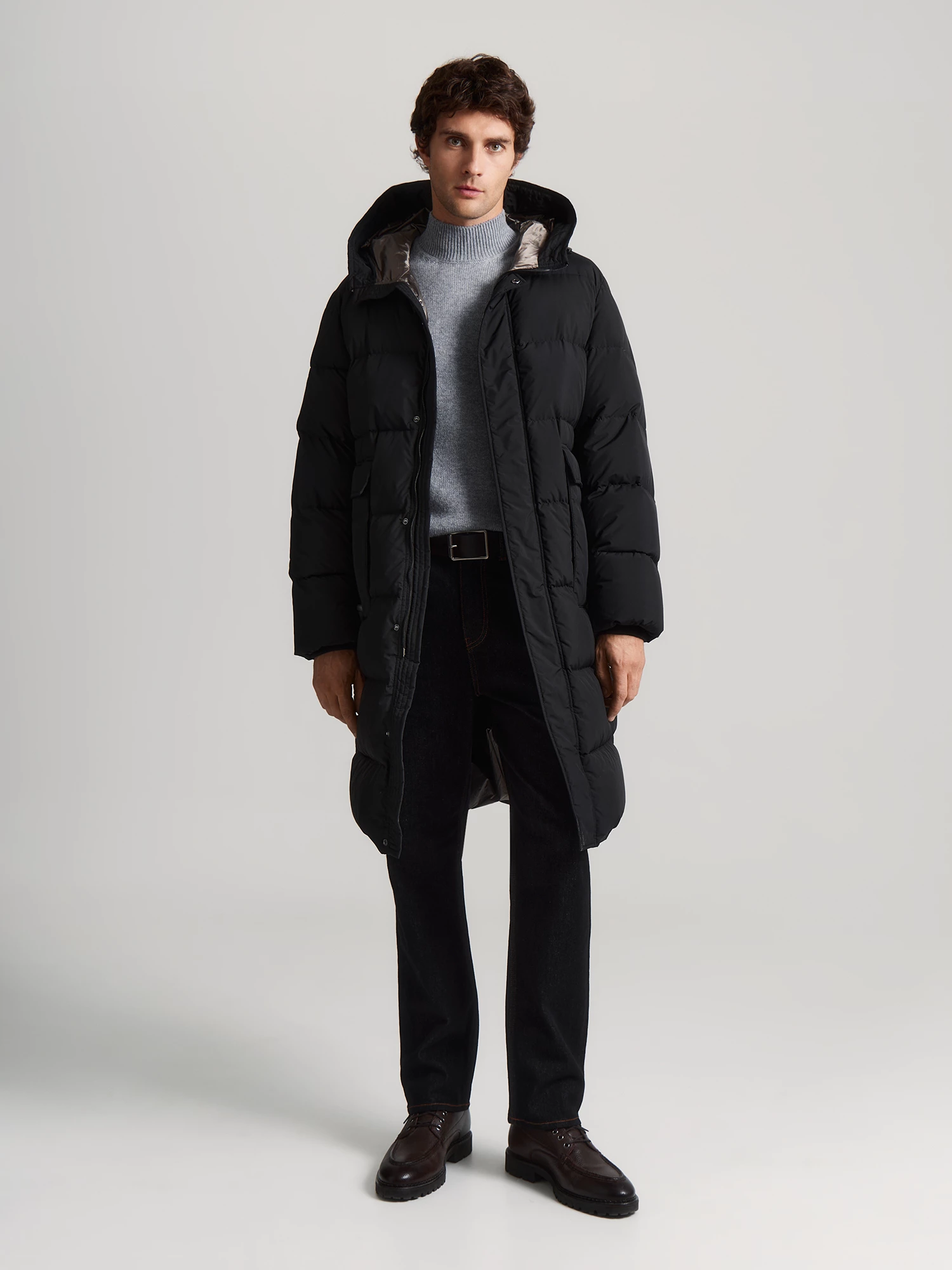 Длинное зимнее пальто из плащевой ткани с влагозащитной пропиткой подходит для осени и зимы. Качественный наполнитель из пуха и пера делает модную модель очень теплой и ультралегкой. Наполнитель равномерно распределен внутри куртки благодаря упаковке из пуходержащей ткани. У модели двойная ветрозащитная подкладка для исключения проявления пуха. Стильный пуховик с капюшоном с фиксаторами и стеганым обрамлением, втачным рукавом, горизонтальной стежкой и наружным ветрозащитным клапаном. Модель выполнена с оригинальными карманами с клапаном и дополнительным боковым входом. Если подобрать размер пуховика на один-два больше, можно формировать актуальный силуэт оверсайз, он предполагает ношение вещей большого размера, это удобно и стильно. Базовый черный универсален, а контрастная подкладка позволяет подобрать больше интересных цветовых сочетаний. Индекс Fill Power 630-650 - это показатель натуральных наполнителей премиум-класса.