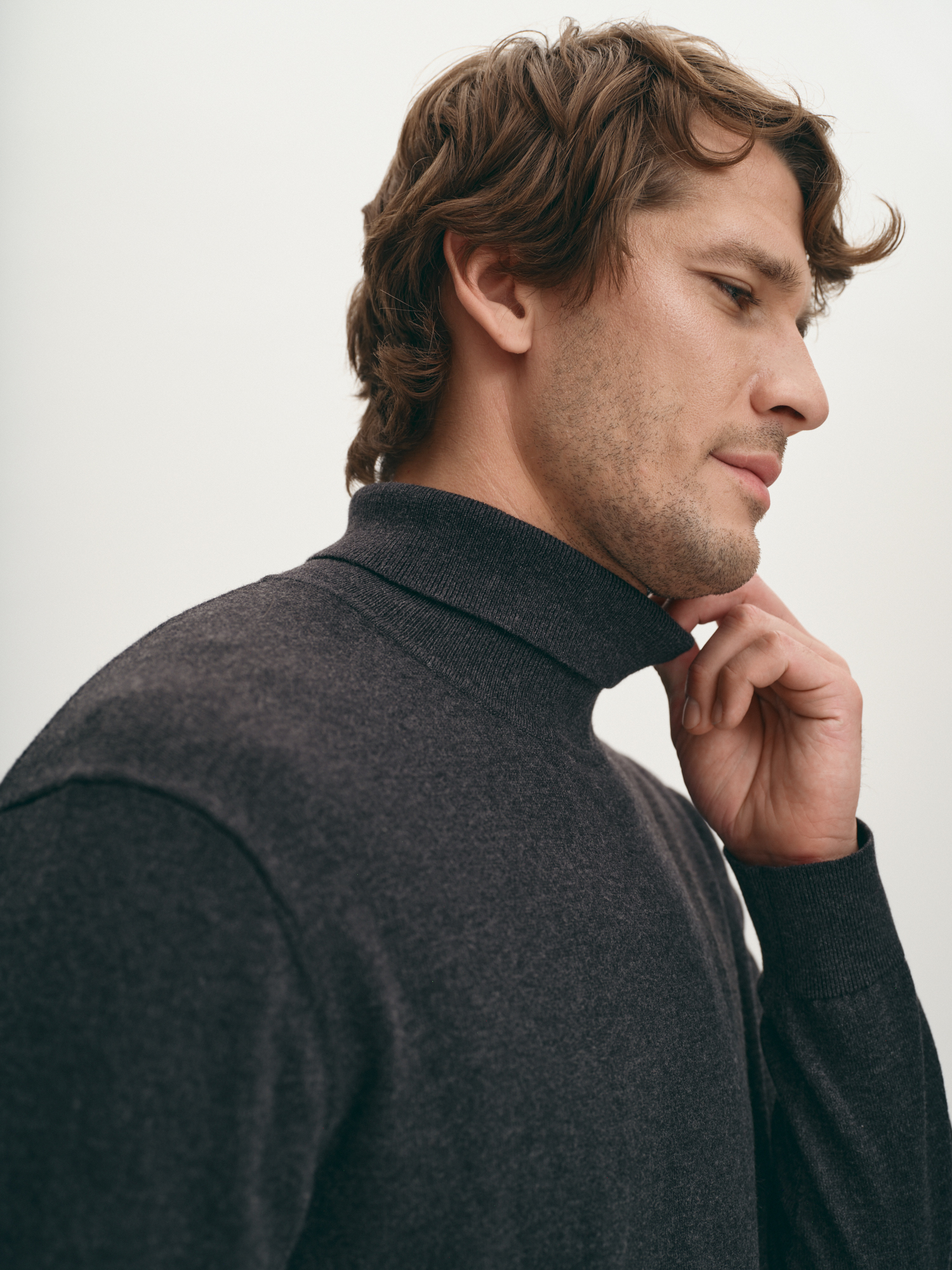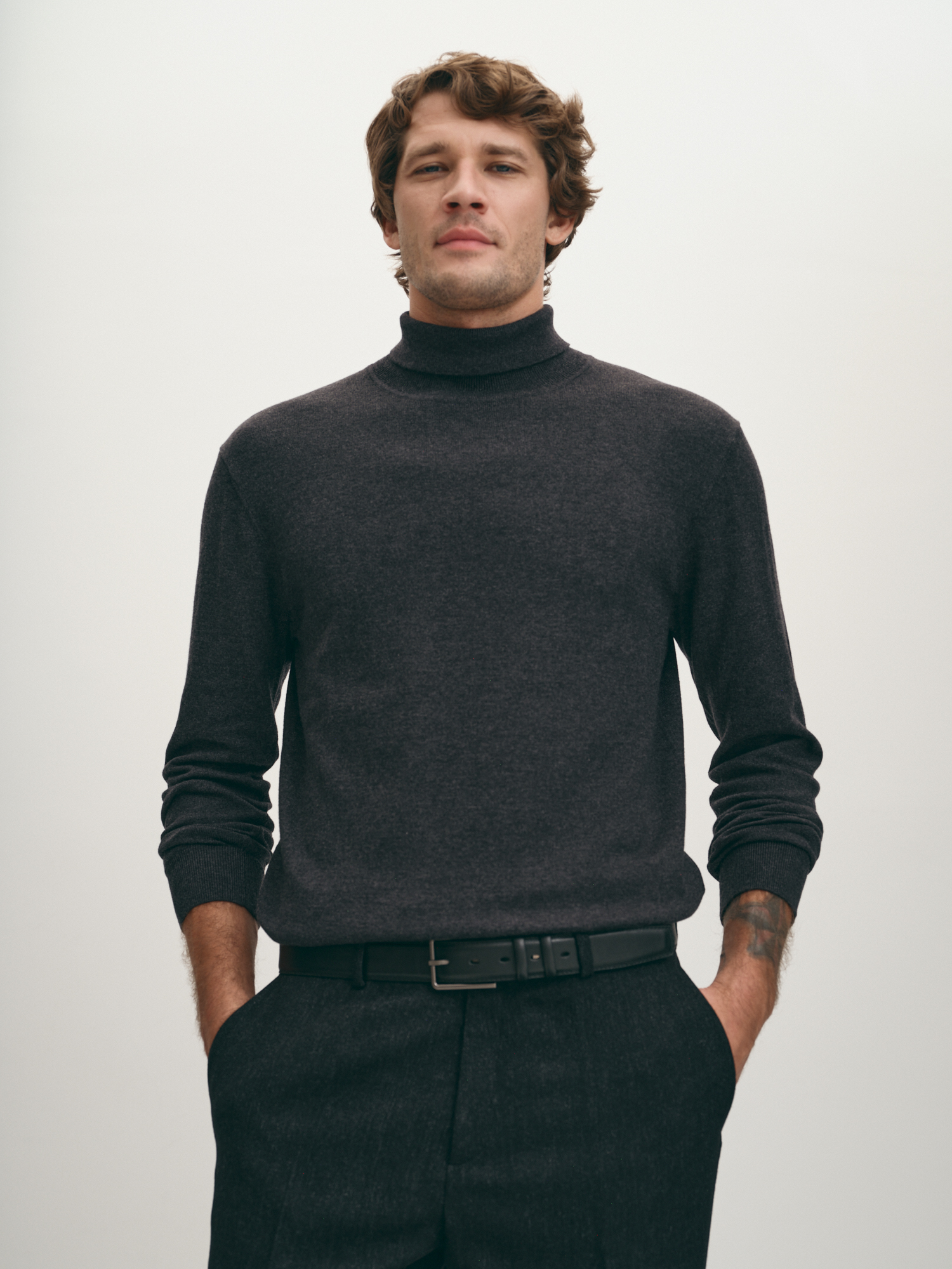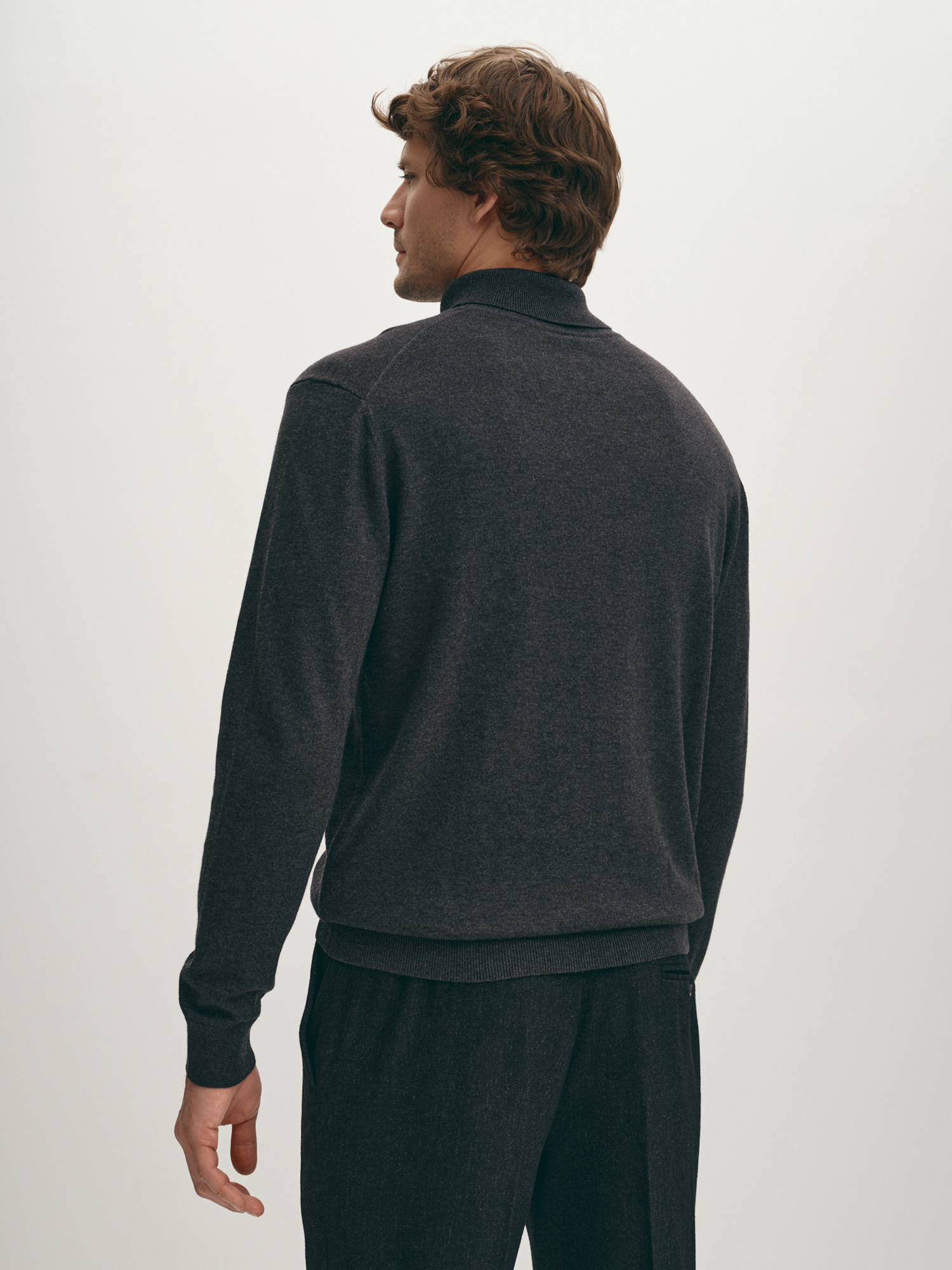 Удобная вязаная водолазка практичного графитового оттенка. Выполнена из фирменной пряжи на основе хлопка с добавлением шерсти мериноса. Модель прямого силуэта, с воротником-стойкой с отворотом и длинным втачным рукавом. Манжеты на рукавах, воротник и манжета внизу изделия оформлены подвязом. Водолазка в стиле смарт-кэжуал станет альтернативой привычным свитерам и лонгсливам.