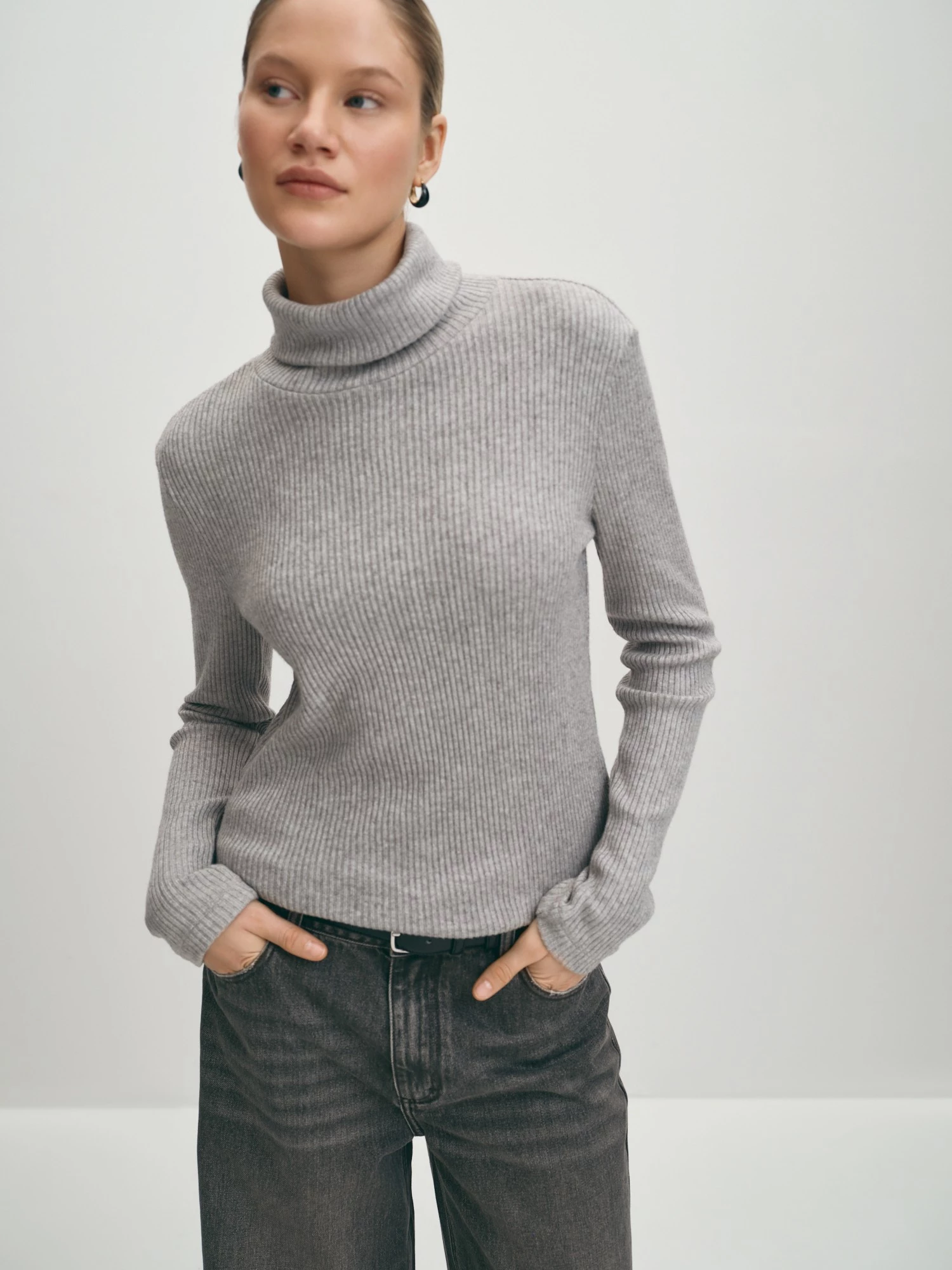 Тонкий базовый полуприлегающий джемпер с двойной высокой стойкой и длинными рукавами. Выбрали для модели фактурный вискозный трикотаж в меланжевом бежевом, при производстве такой ткани использованы нити разных оттенков основного цвета. Стильный светло-бежевый гольф можно носить как отдельно, так и под пиджак, в офис, в школу, на прогулку.