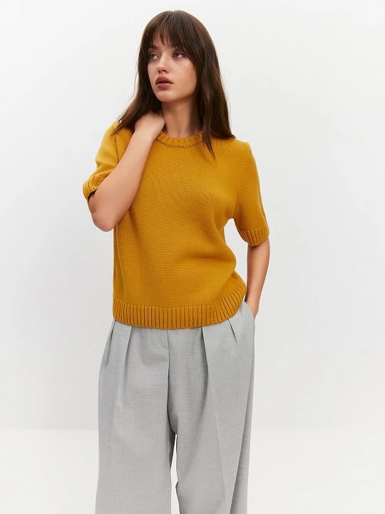 Выбрали для модели короткий рукав и аккуратный круглый вырез - форму, актуальную для переменчивой осенней погоды. Использование высокоточного оборудования гарантирует качество исполнения, а особые эластичные швы делают джемпер невероятно комфортным и уютным.