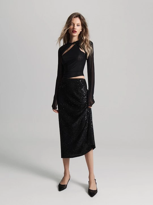 Классический черный цвет делает юбку универсальной для вечера, праздника или смелого повседневного образа.