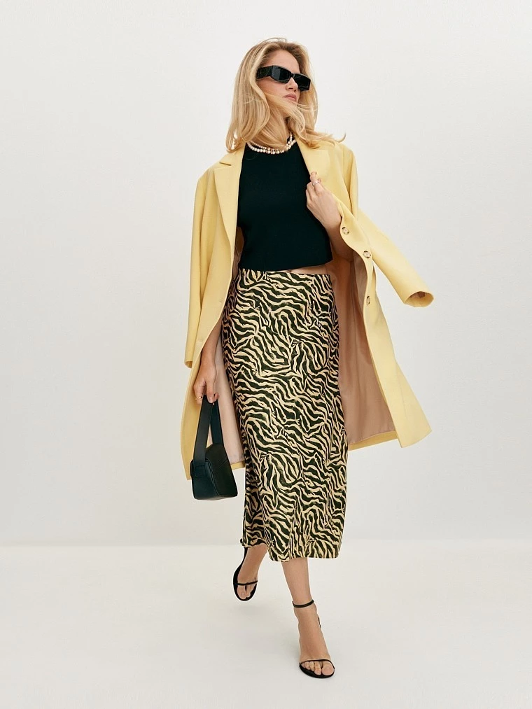 Стильная юбка-миди с ярким анималистичным принтом-зебра. Качественная легкая ткань красиво струится по фигуре и особенно приятна на ощупь. Для комфортного ношения юбка дополнена аккуратной застежкой на потайную молнию. Высокая посадка отлично садится по фигуре, а мягкое расклешение к низу особенно эффектно смотрится в движении. Юбка разбавит повседневные луки и станет свежим дополнением гардероба.